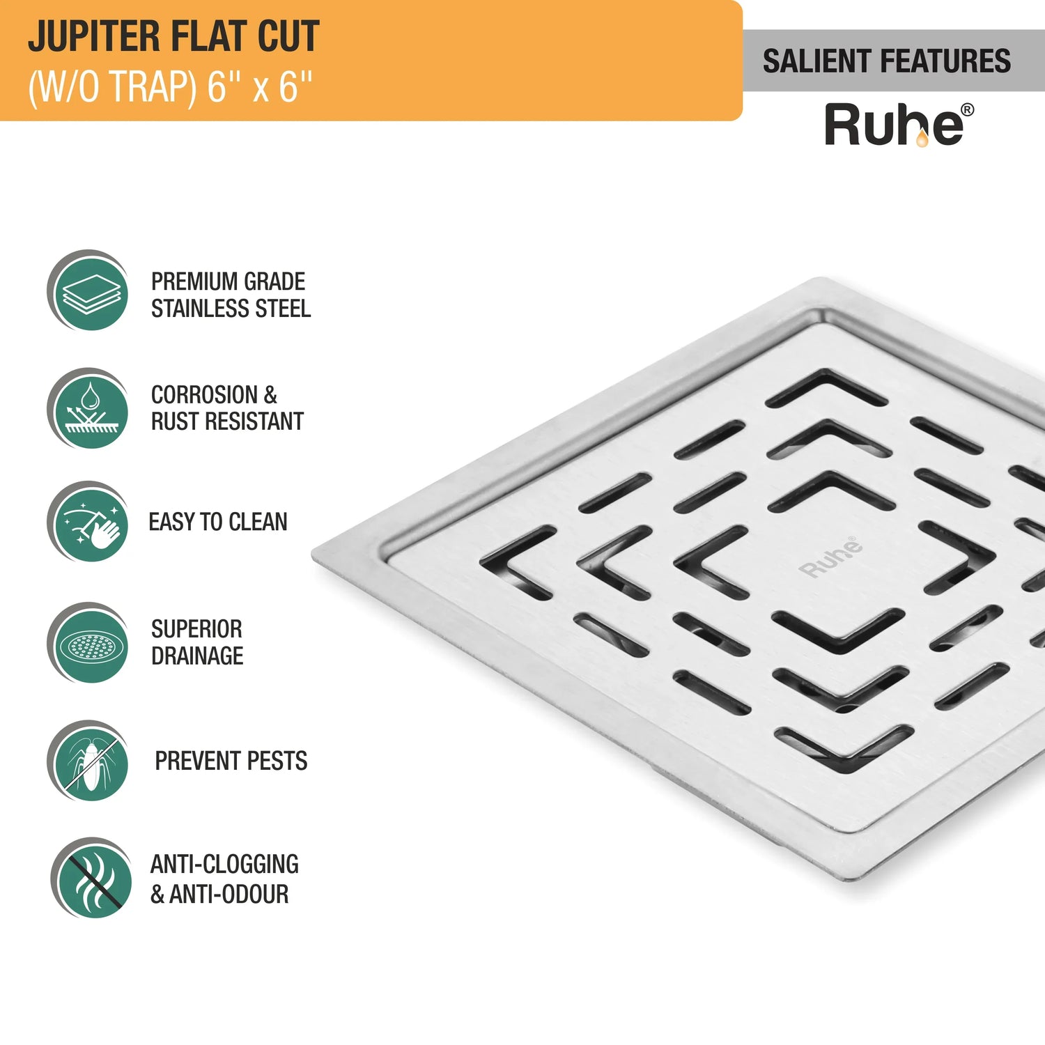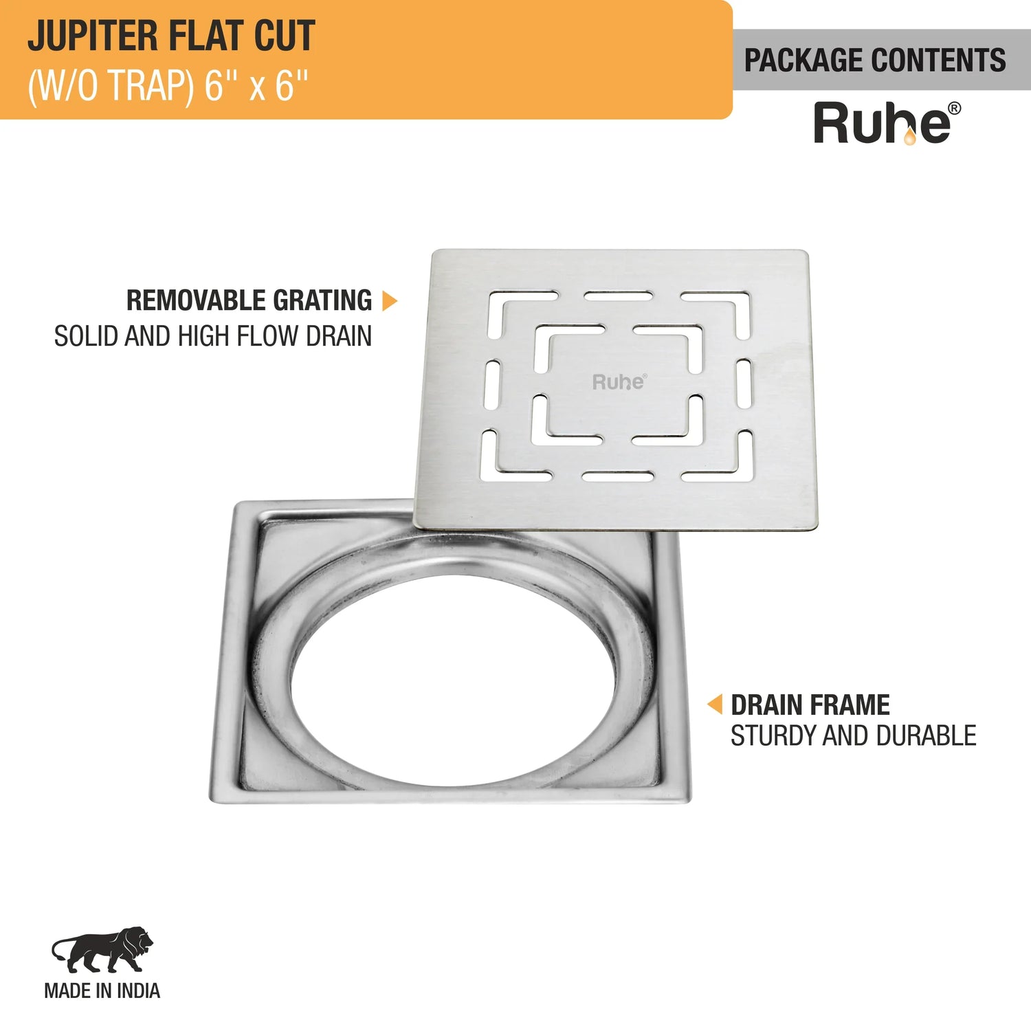 Jupiter Square Premium Flat Cut Floor Drain (6 x 6 Inches)