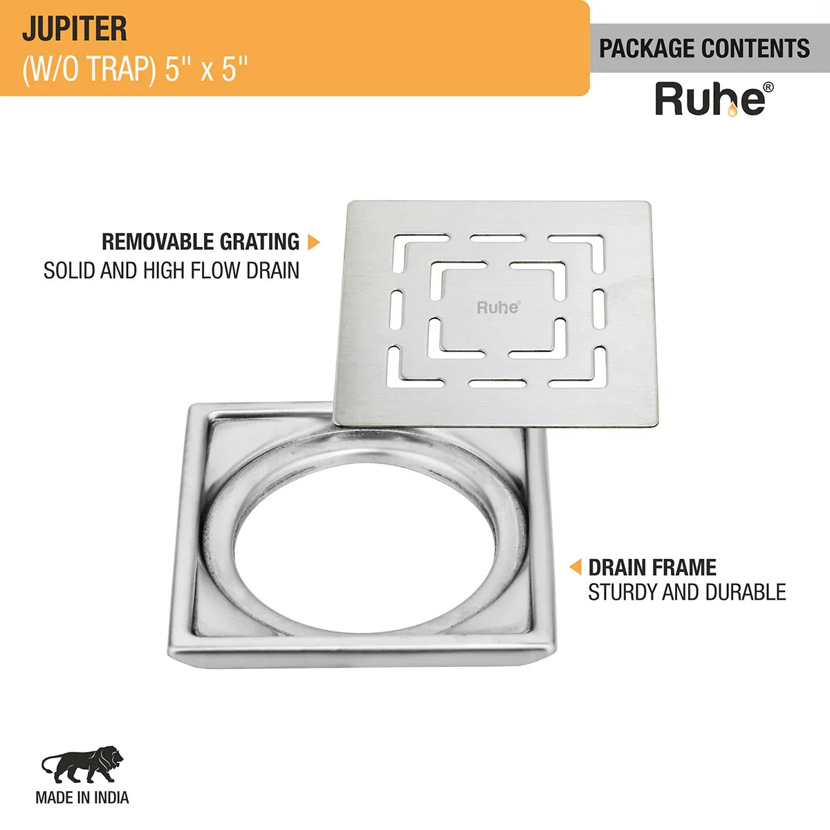 Jupiter Square Premium Floor Drain (5 x 5 Inches) - by Ruhe