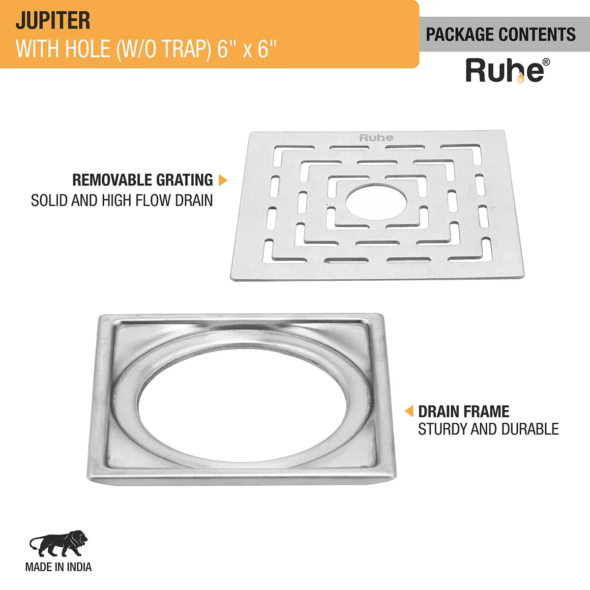 Jupiter Square Premium Floor Drain (6 x 6 Inches) with Hole - by Ruhe