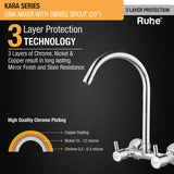 RUHE Sink Mixer with Round Swivel Spout Faucet from its Kara collection is meant especially for wall mount installations for sinks/basins, and has a 360° rotating 20 inches large round spout that enables you to control the direction of the water flow, and allows you to mix hot and cold water.