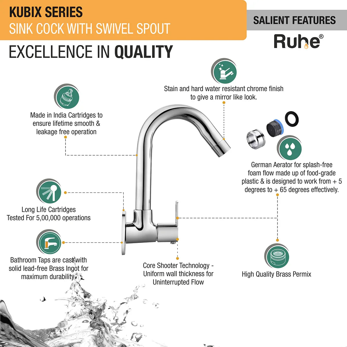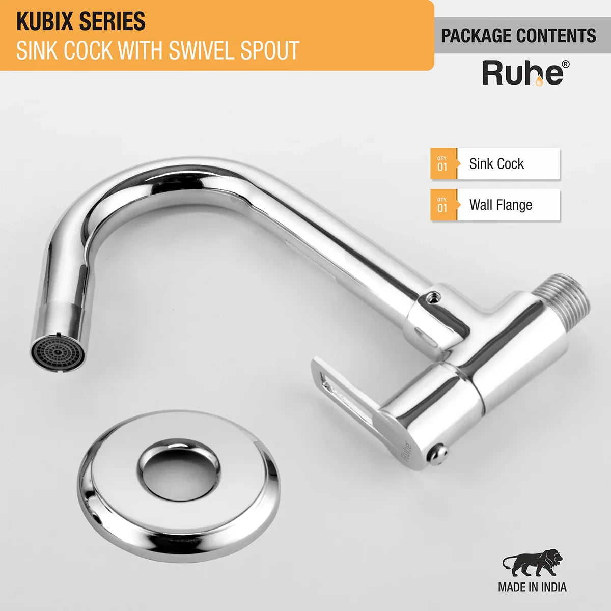 RUHE Sink Cock with Round Swivel spout Faucet from its Kubix collection is meant especially for wall mount installations for sinks/basin and has a 360° rotating 12 inches small round spout that enables you to control the direction of the water flow.