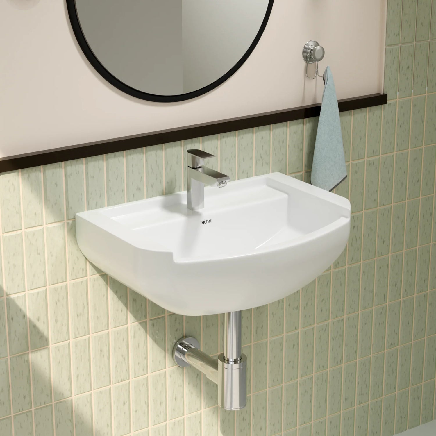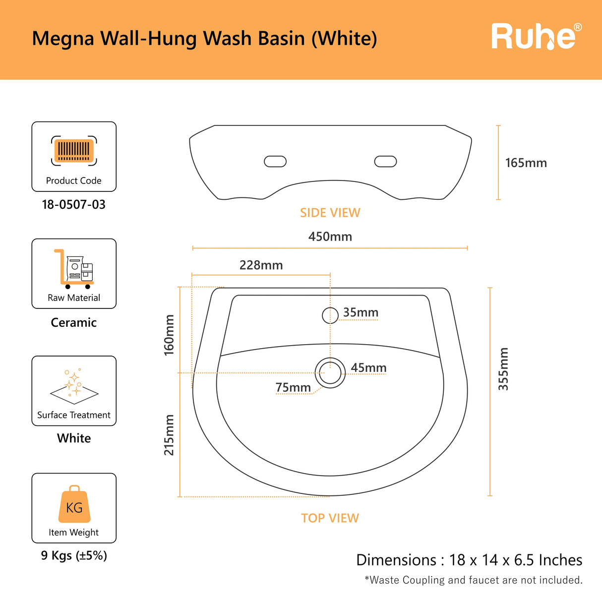 Crafted from white vitreous china, this wall-hung basin offers a clean, space-saving design with a modern, minimalist appeal.
