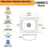 Oval Single Bowl Kitchen Sink (20 x 17 x 8 Inches)
