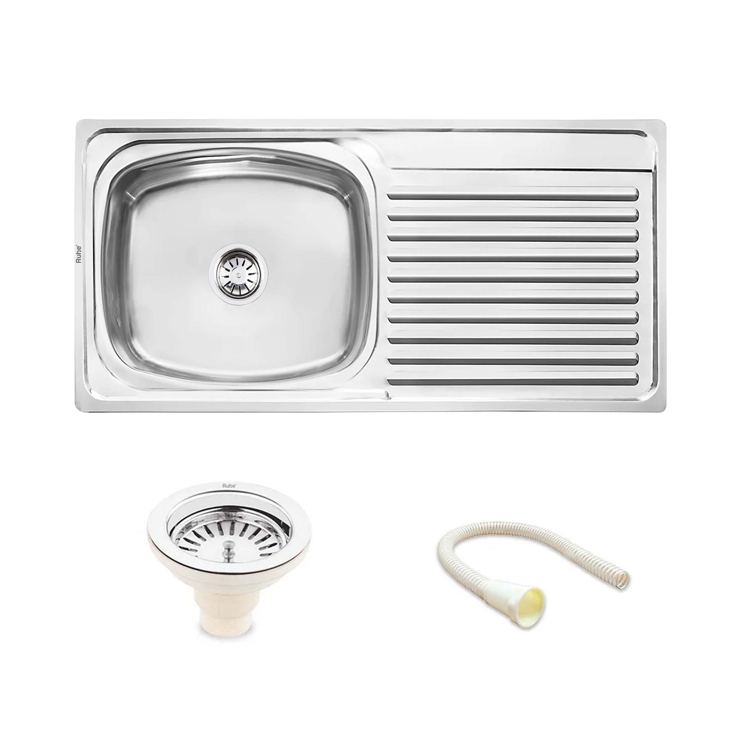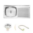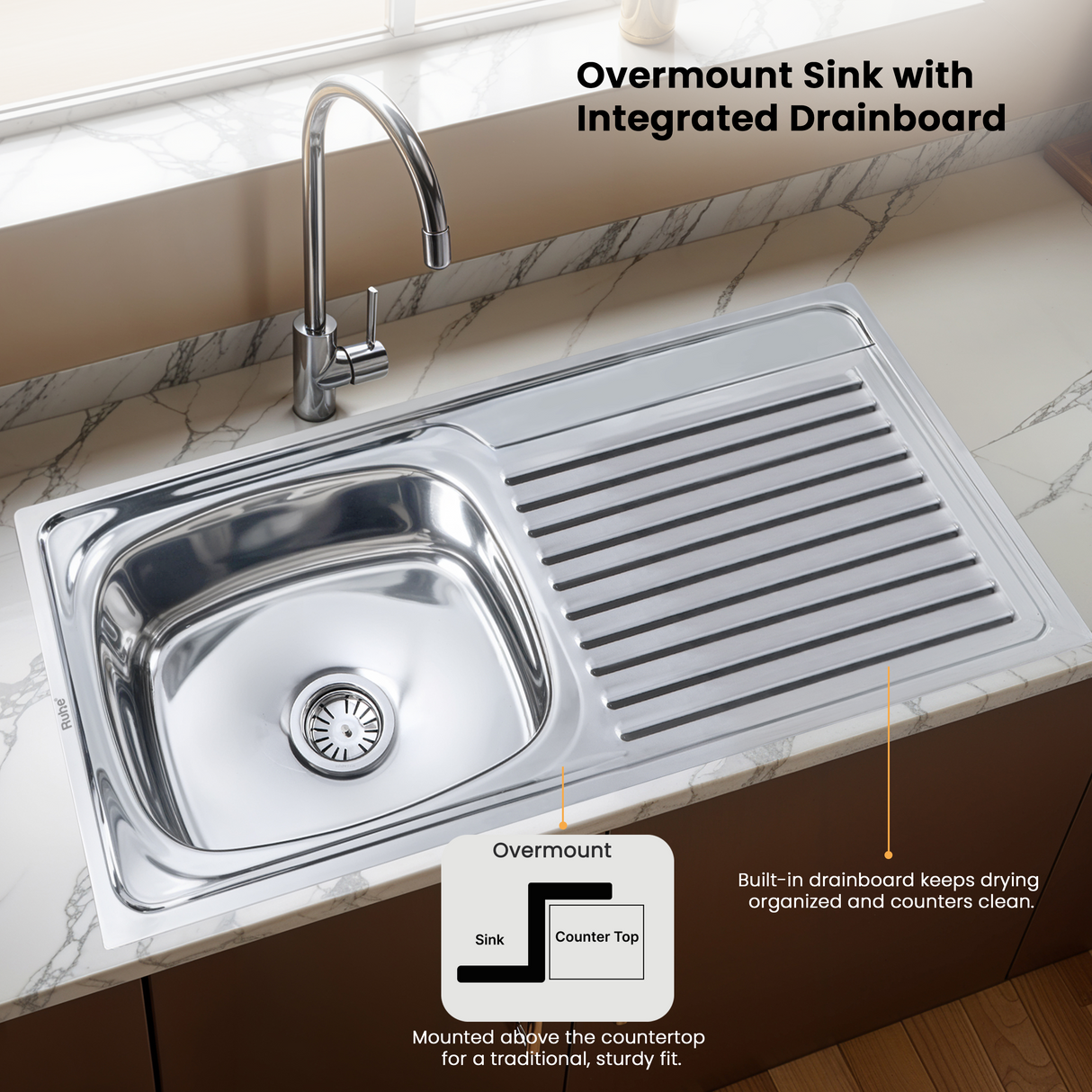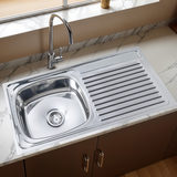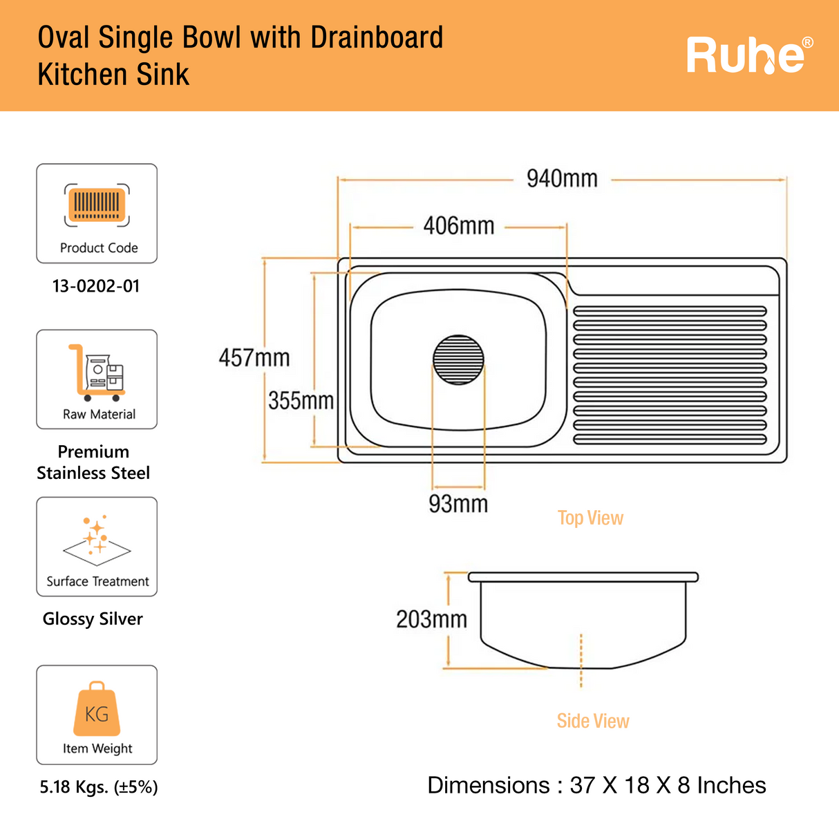 Oval Single Bowl with Drainboard Kitchen Sink (37 x 18 x 8 Inches)