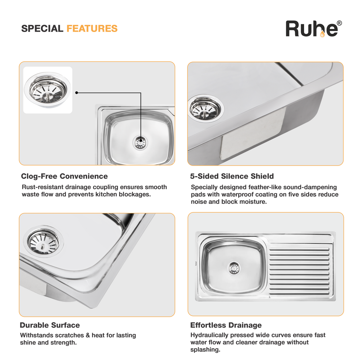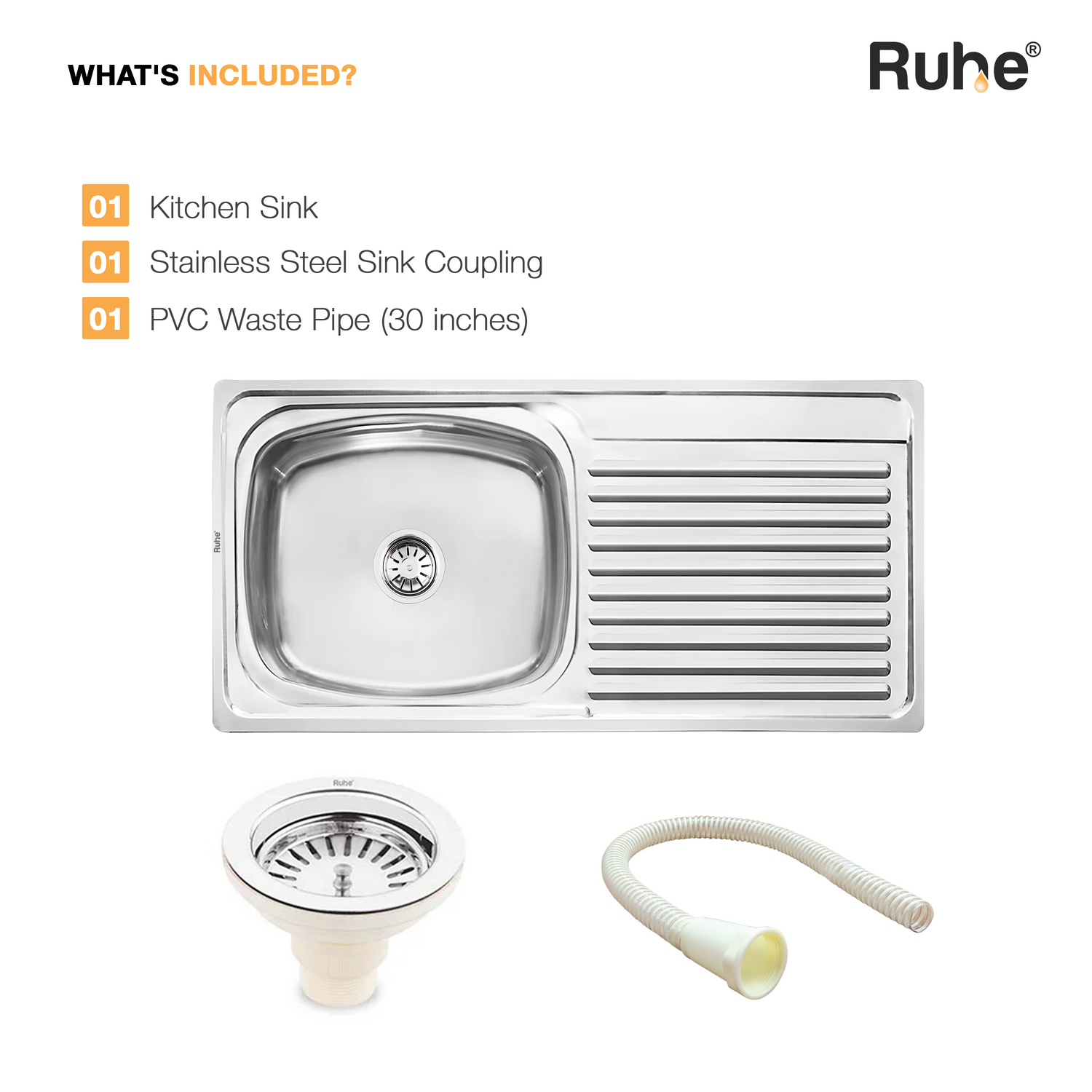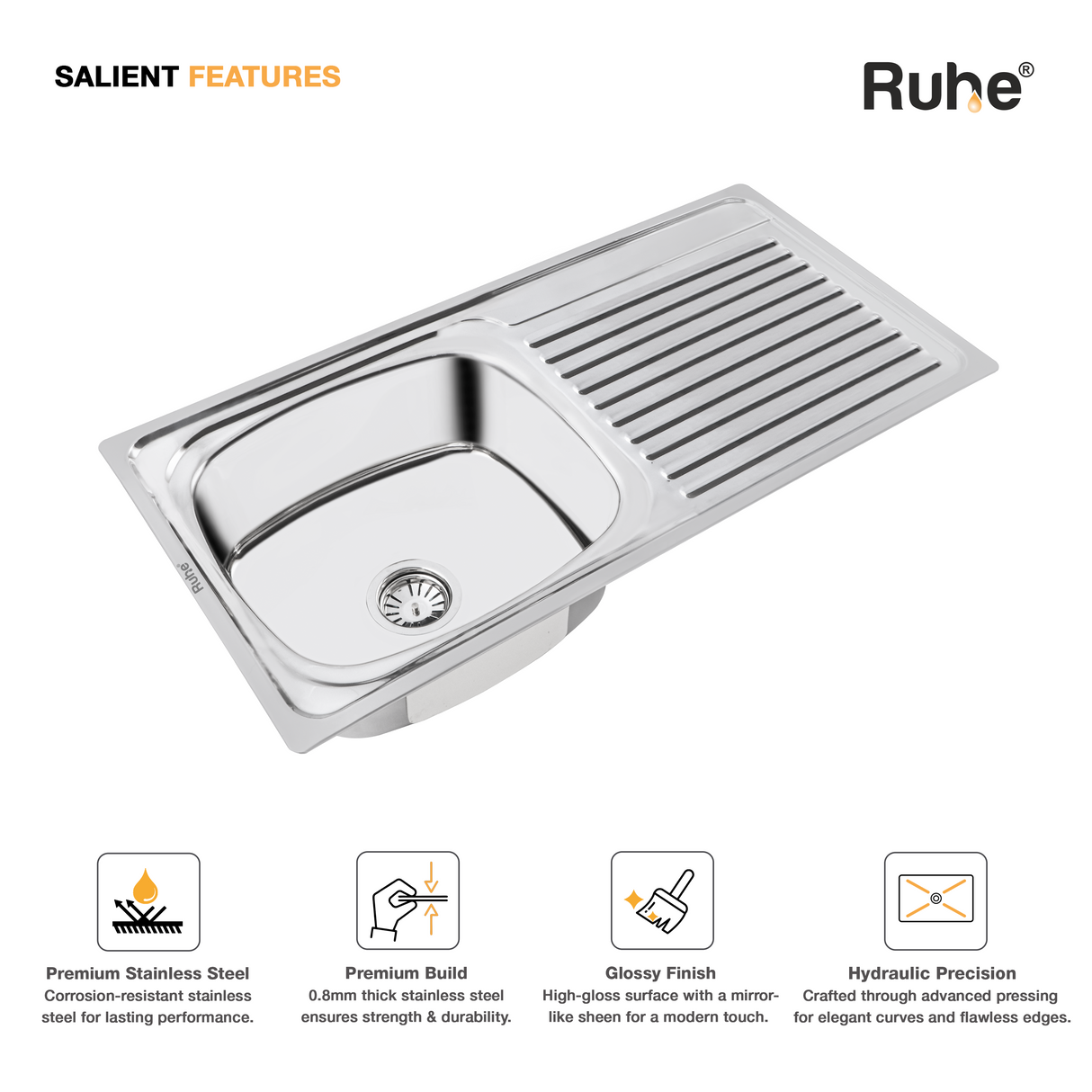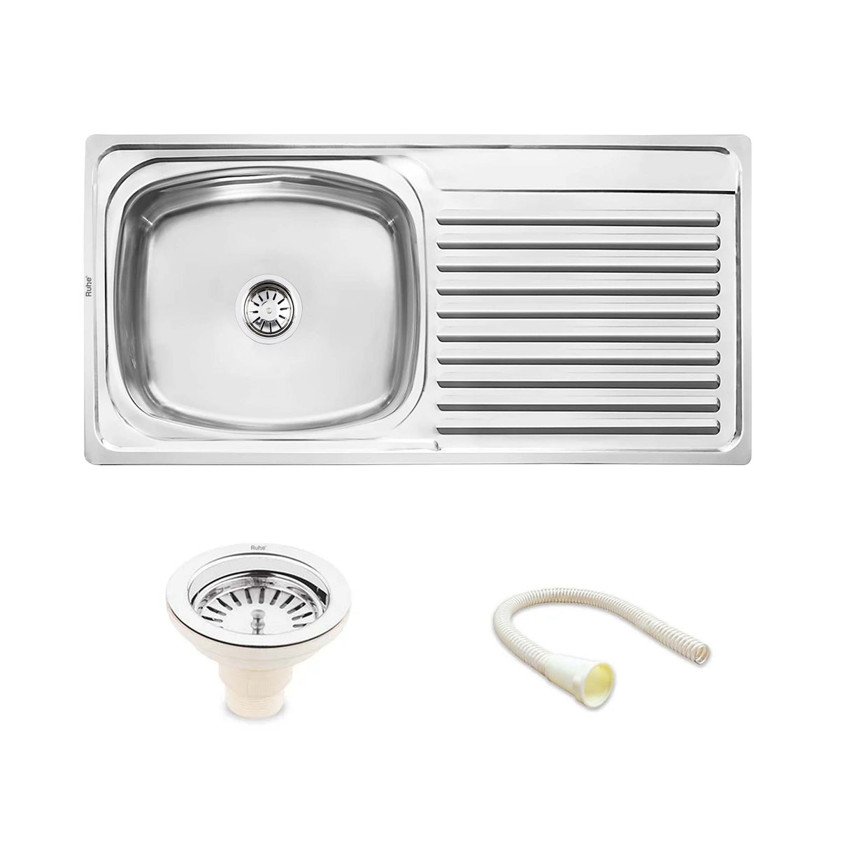 Oval Single Bowl with Drainboard Kitchen Sink (37 x 18 x 8 Inches)