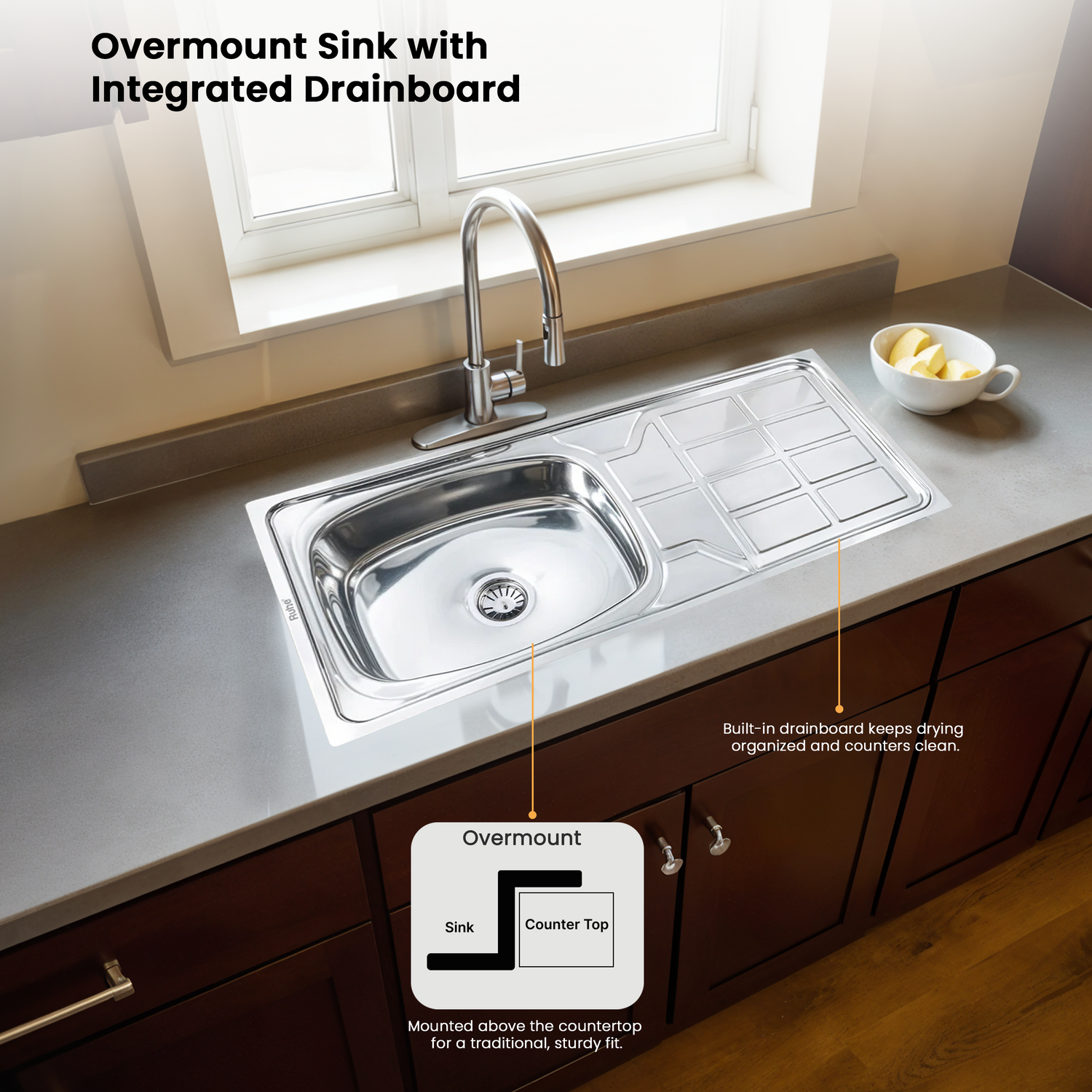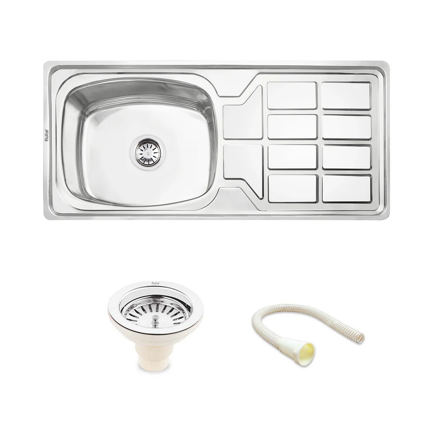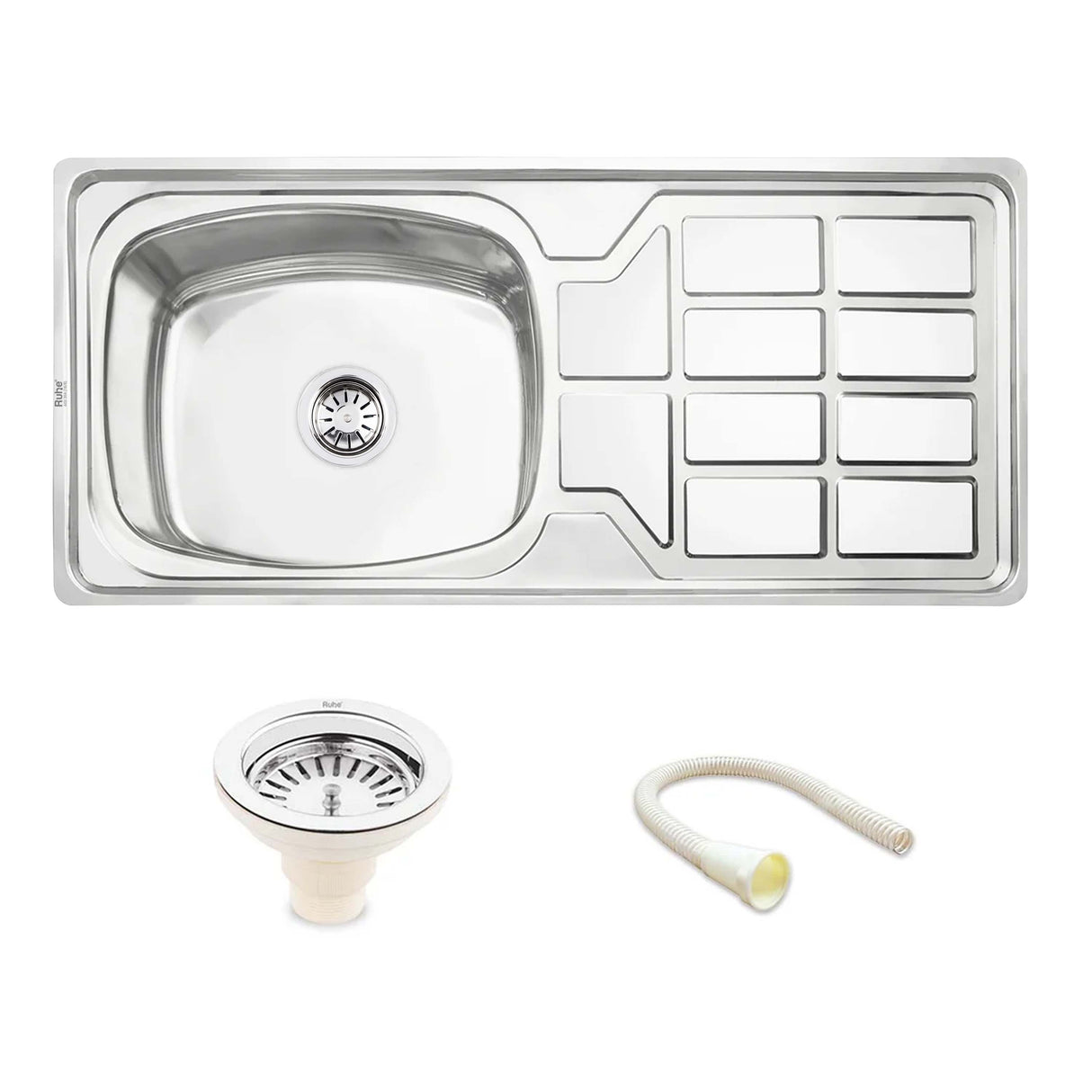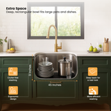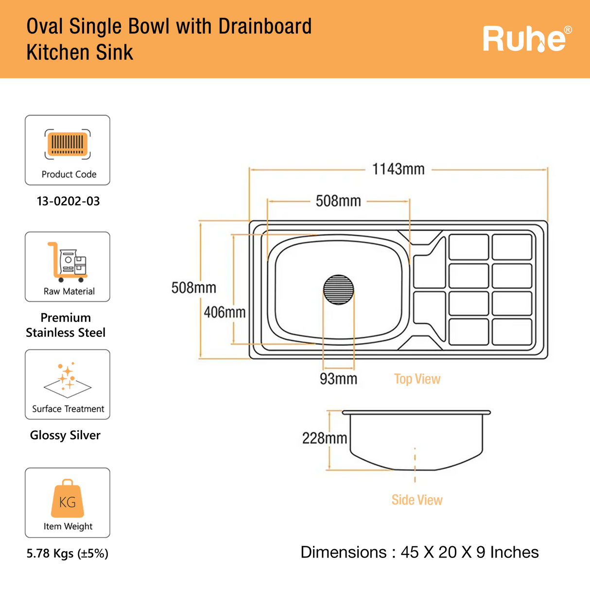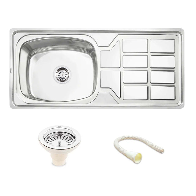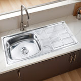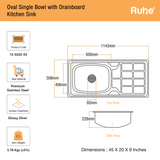 Oval Single Bowl with Drainboard Kitchen Sink (45 x 20 x 9 Inches)