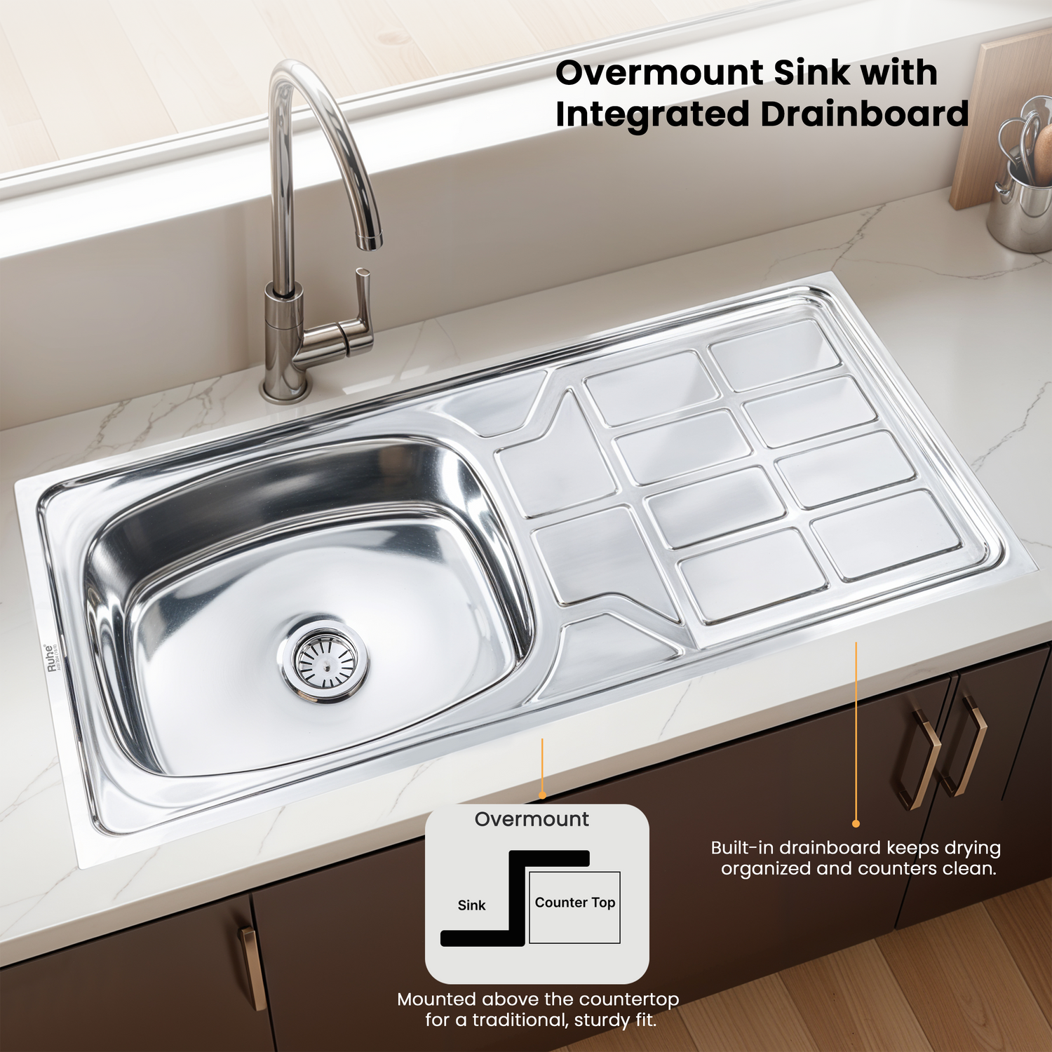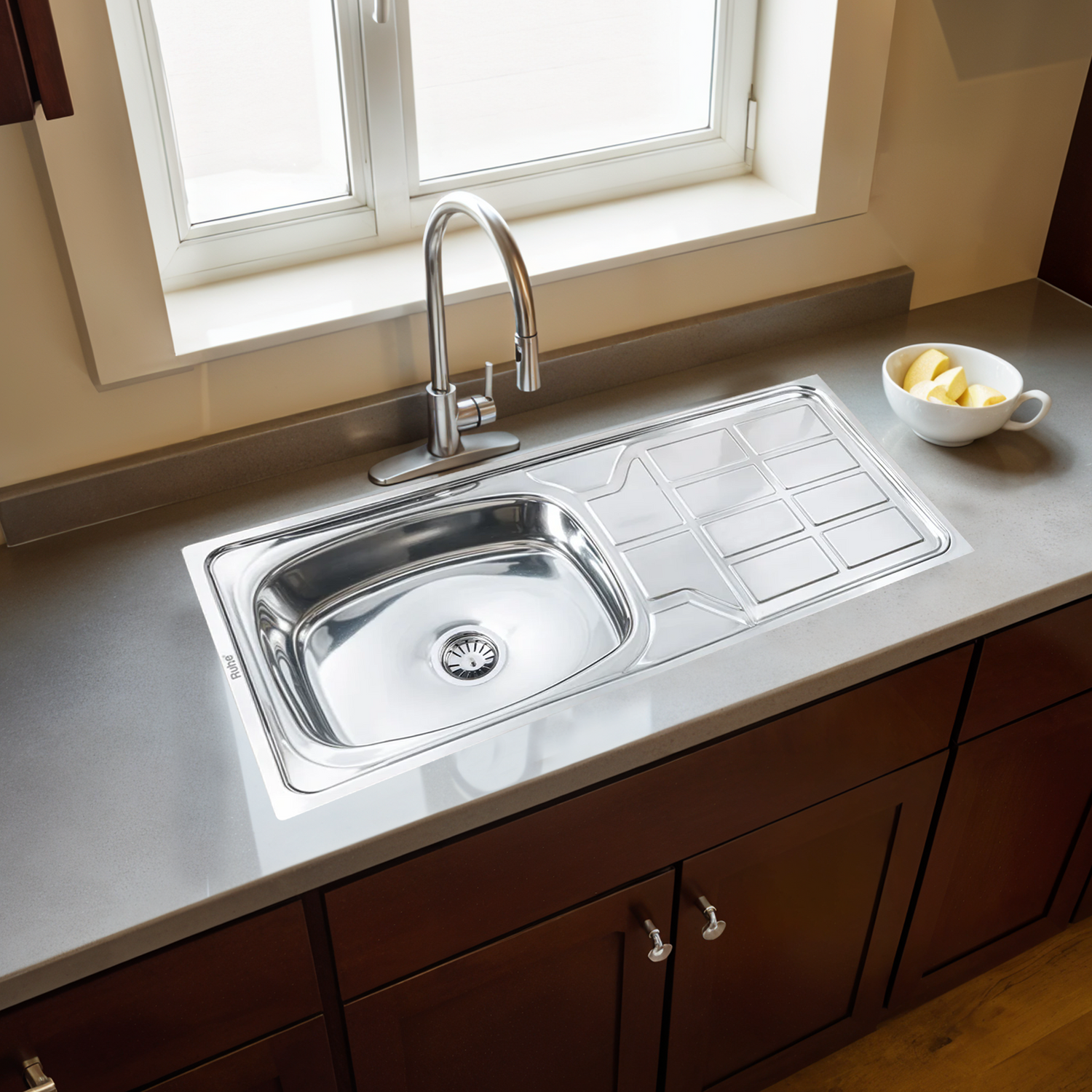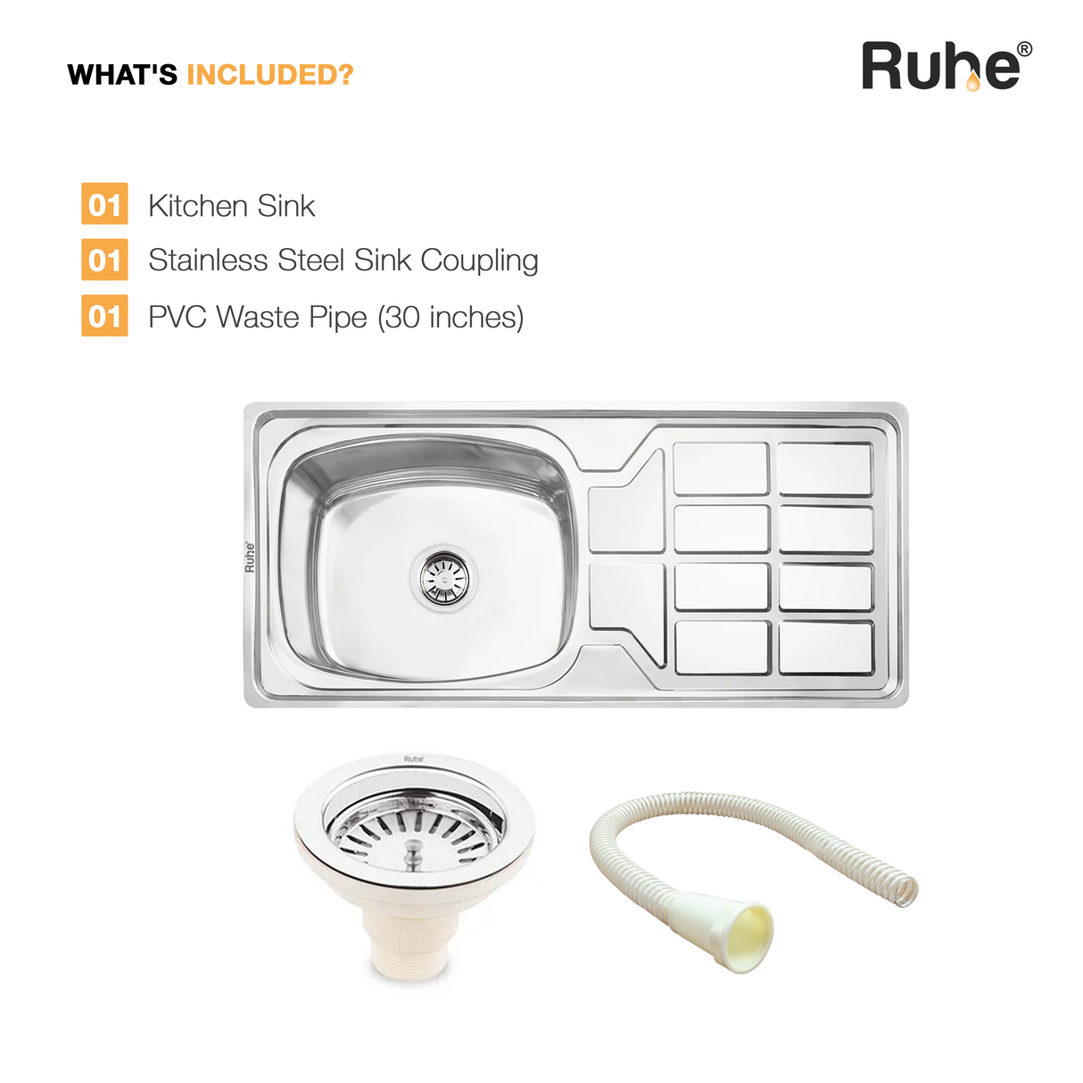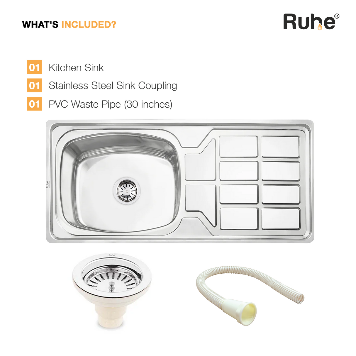 Oval Single Bowl with Drainboard Kitchen Sink (45 x 20 x 9 Inches)