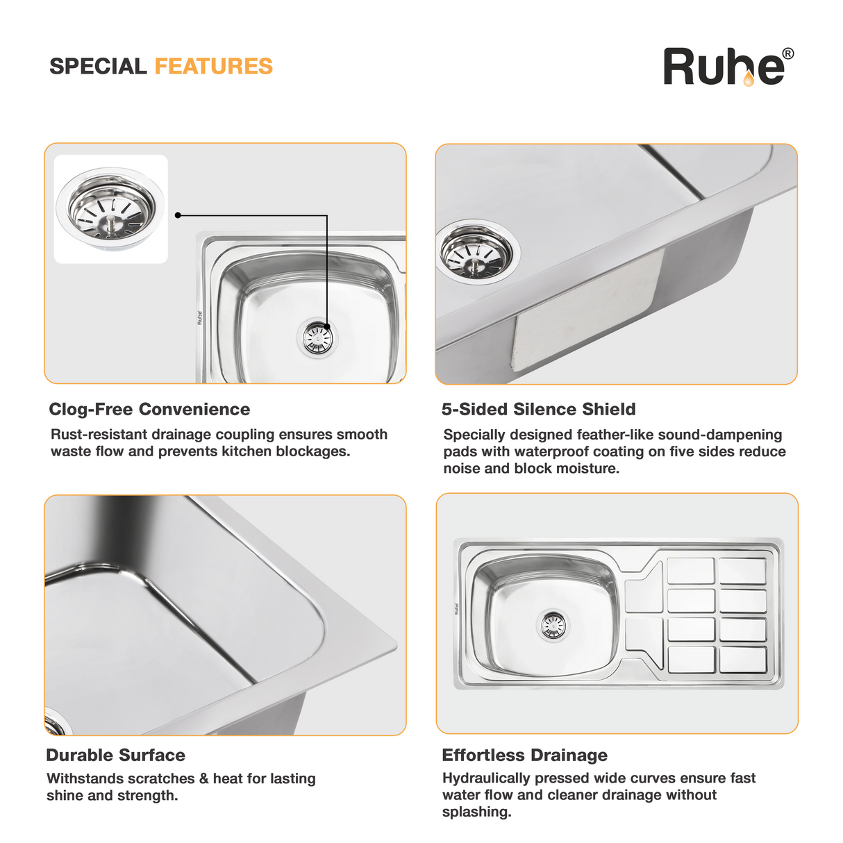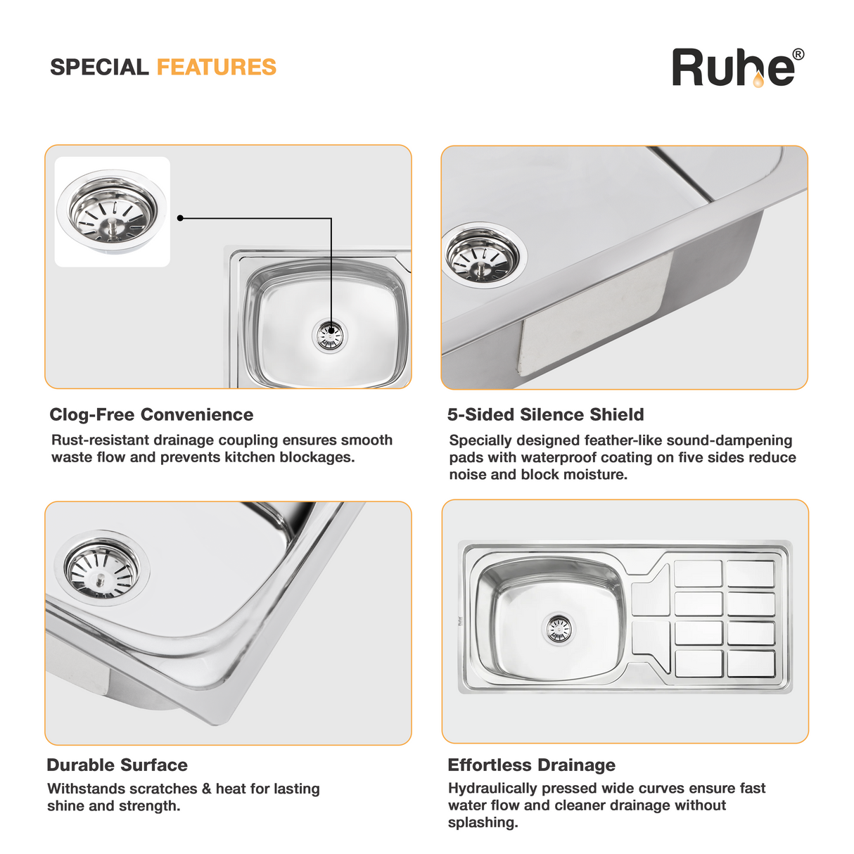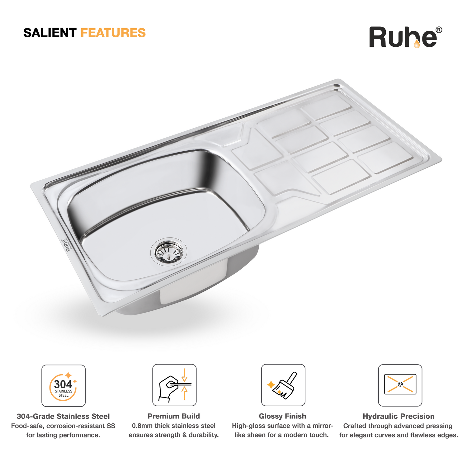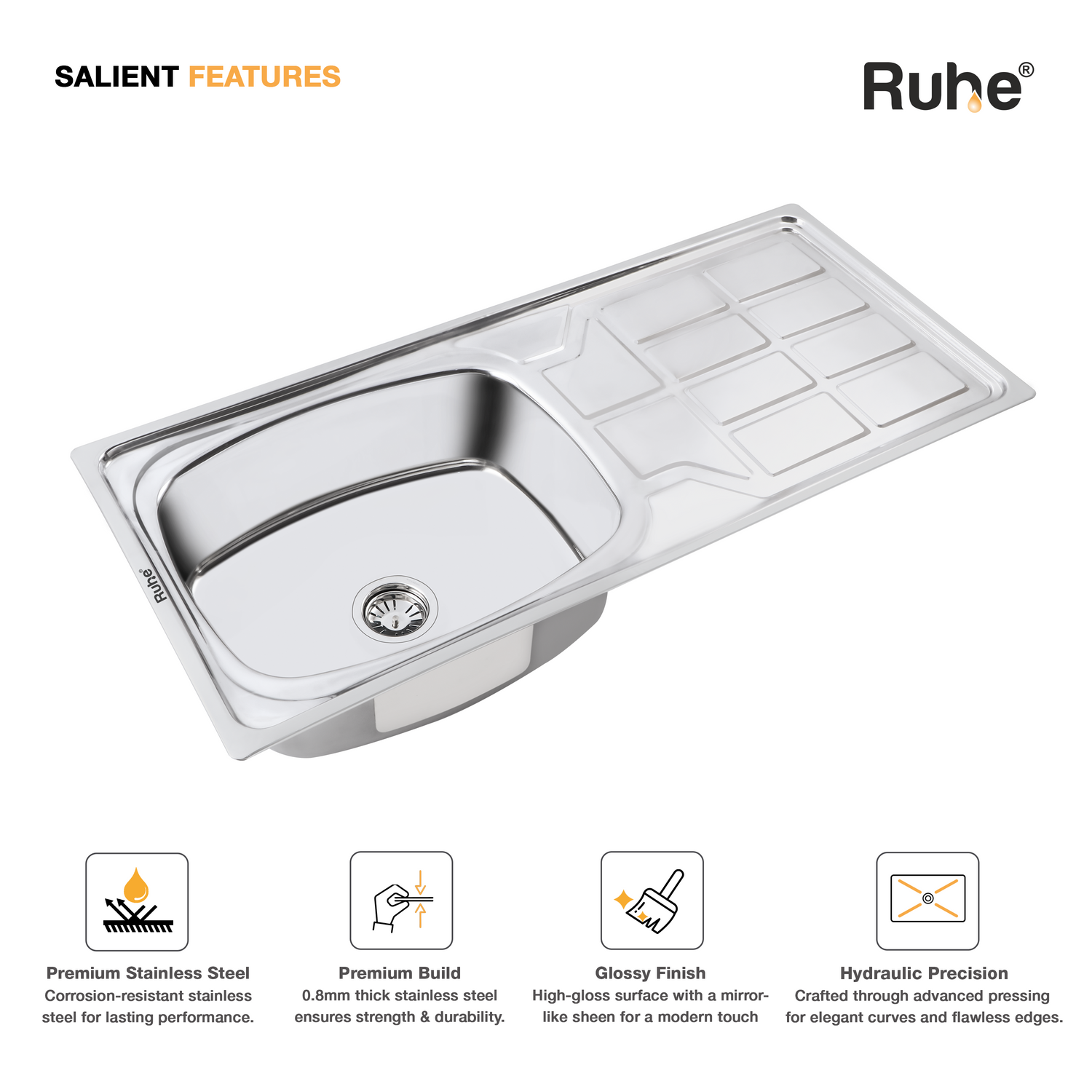 Oval Single Bowl with Drainboard Kitchen Sink (45 x 20 x 9 Inches)