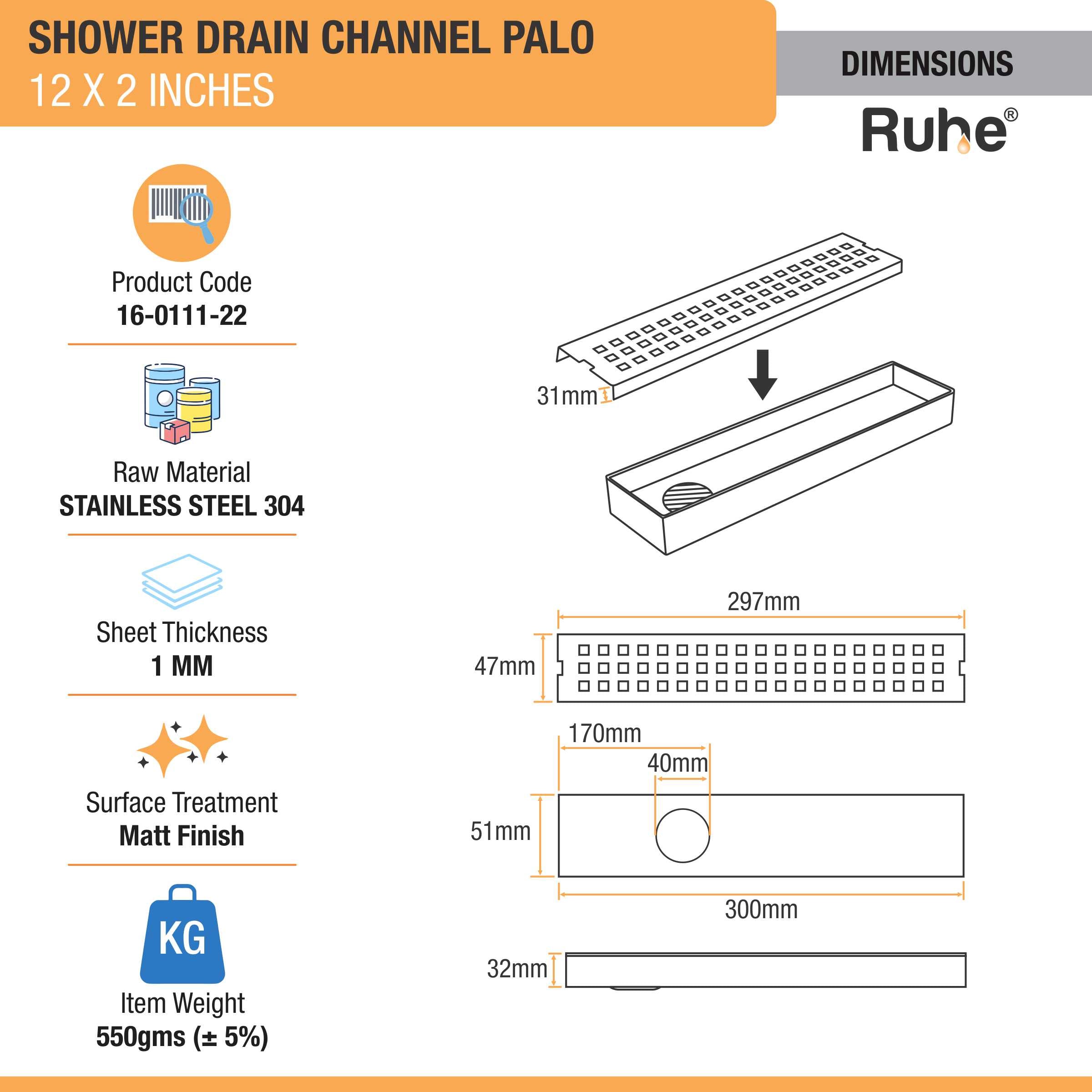 Ruhe Palo Shower Drain Channels made with 1mm Thick 304-Grade Stainless Steel are meant to handle large volumes of water and come with a Side Hole (customisable), Drain Cover, Tray and a 10 Year Warranty.