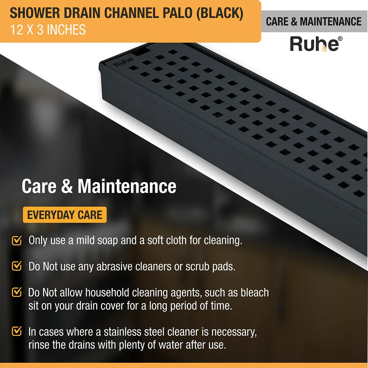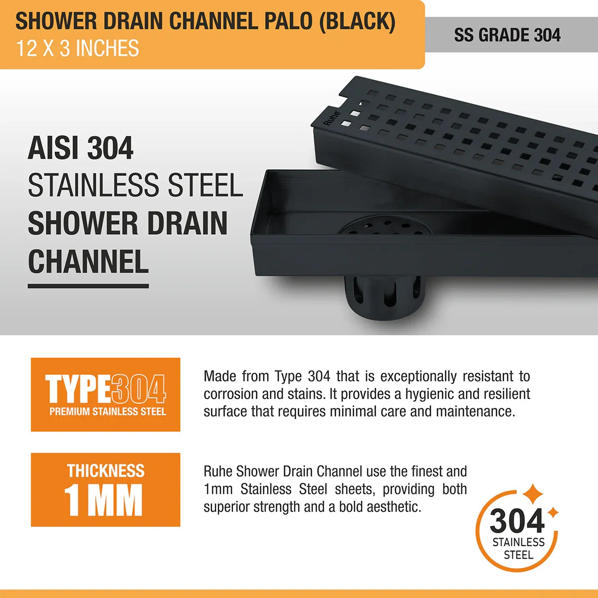 Palo Shower Drain Channel (12 x 3 Inches) Black PVD Coated
