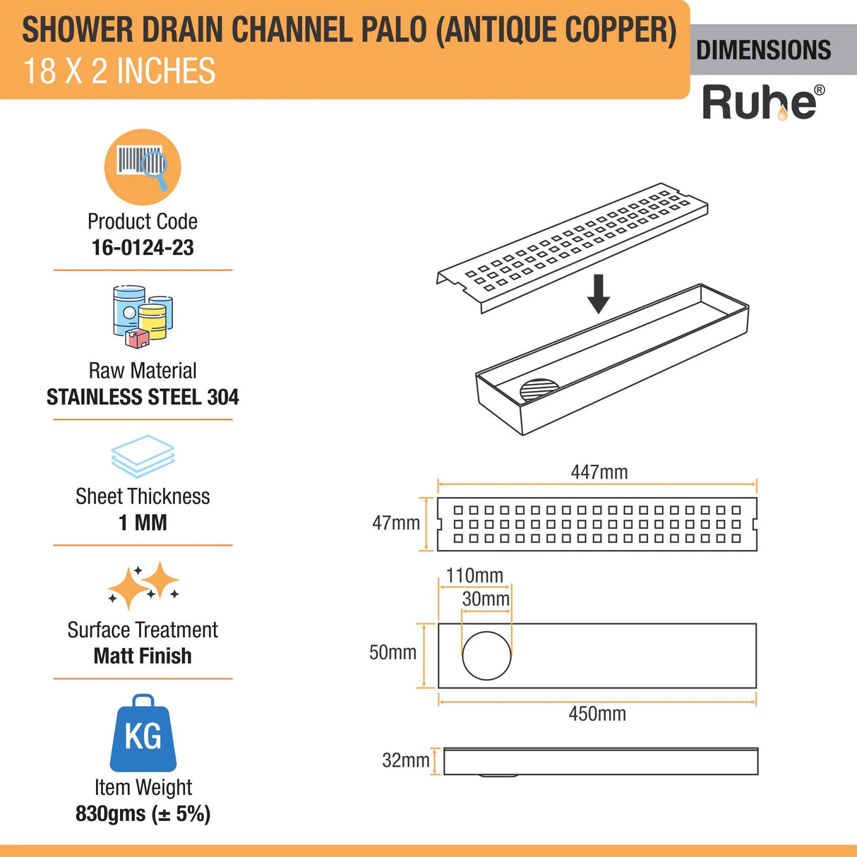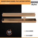 Palo Shower Drain Channel (18 x 2 Inches) Antique Copper PVD Coated...