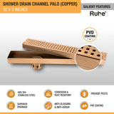 Palo Shower Drain Channel (32 x 3 Inches) Antique Copper PVD Coated...