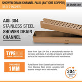 Palo Shower Drain Channel (36 x 2 Inches) Antique Copper PVD Coated...
