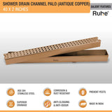 Palo Shower Drain Channel (40 x 2 Inches) Antique Copper PVD Coated - by Ruhe