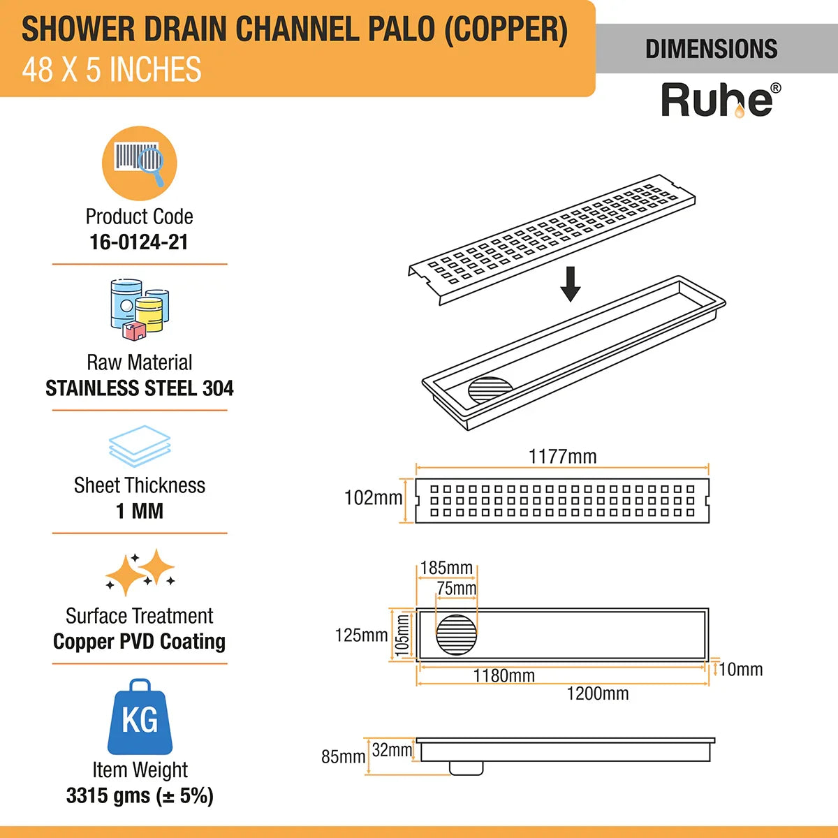 Palo Shower Drain Channel (48 x 5 Inches) Antique Copper PVD Coated...