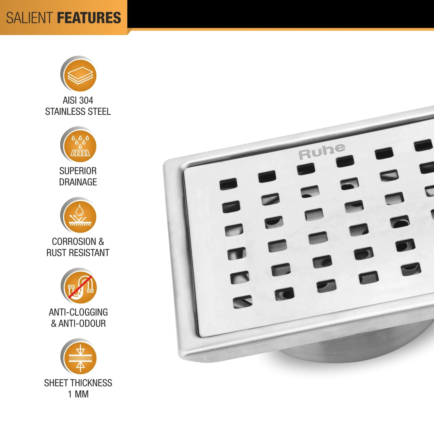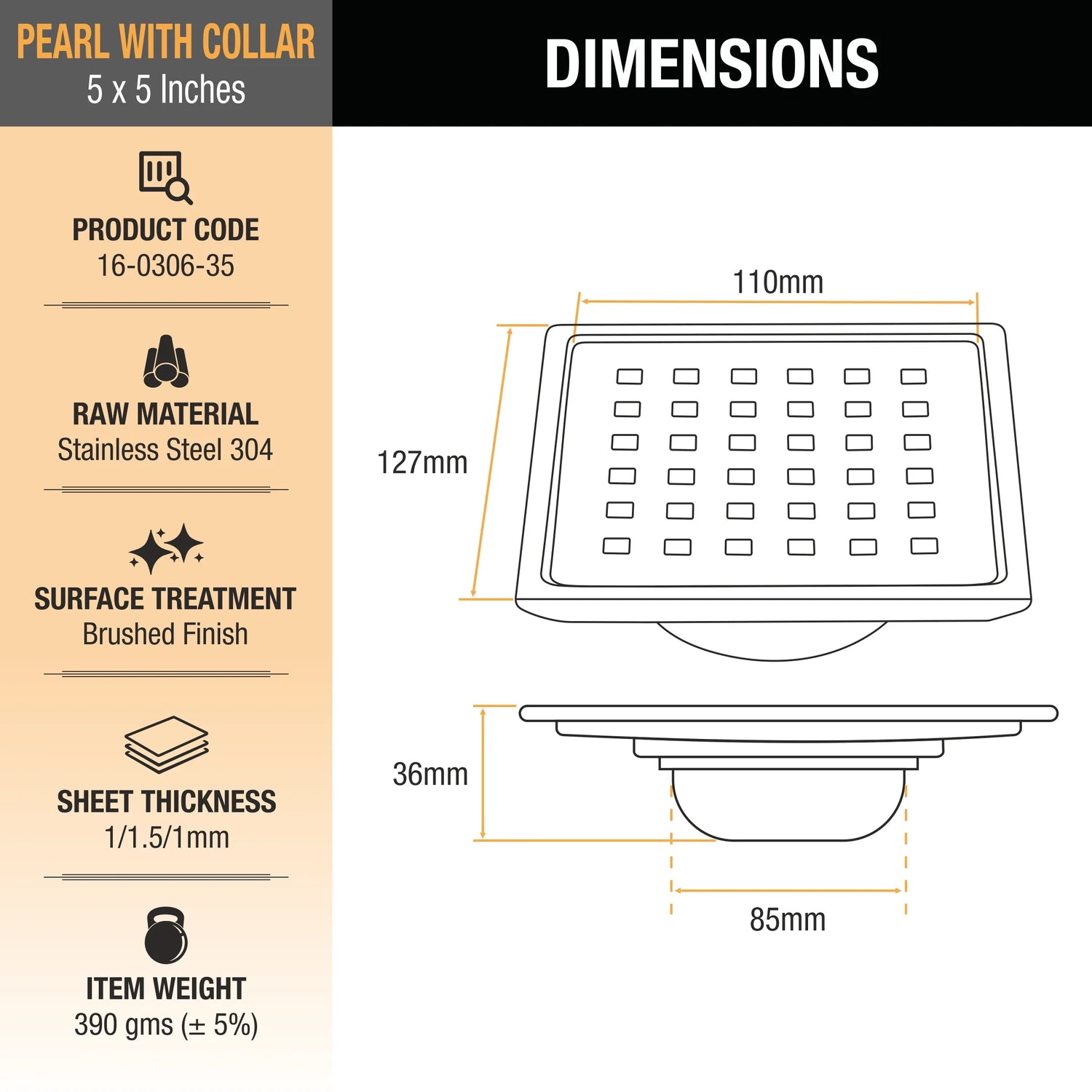 Pearl Square 304-Grade Floor Drain with Collar & Cockroach Trap (5 x 5 Inches) - by Ruhe is backordered and will ship as soon as it is back in stock.