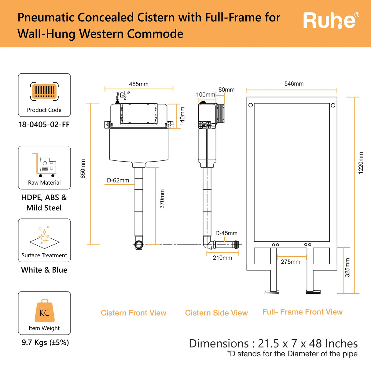 Pneumatic Concealed Cistern for Western Commode with Full Frame
