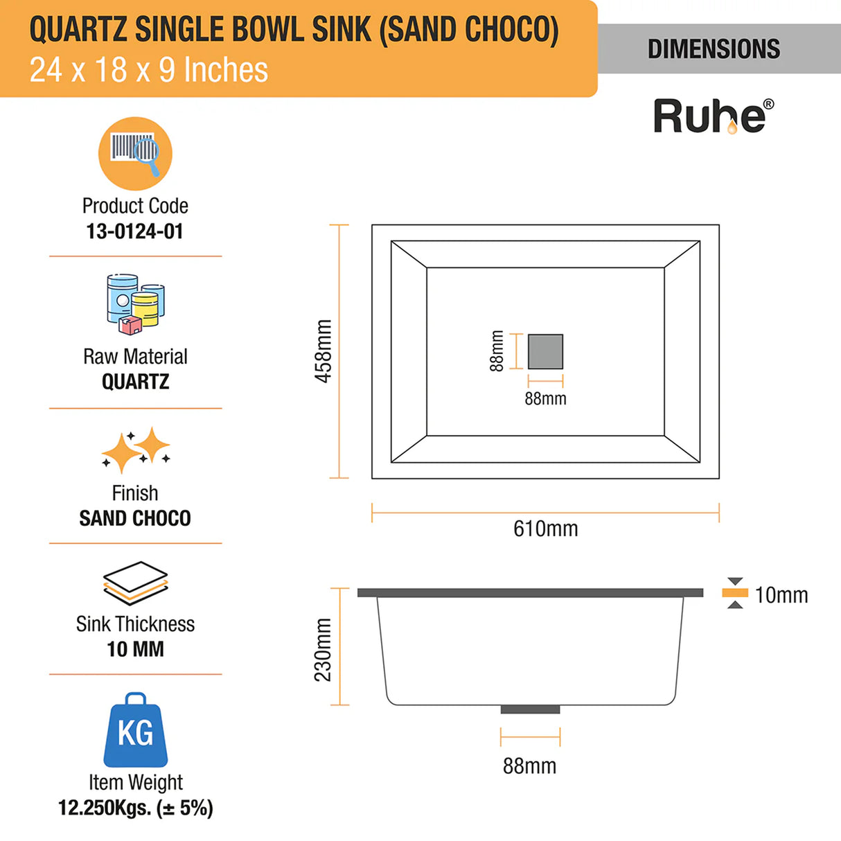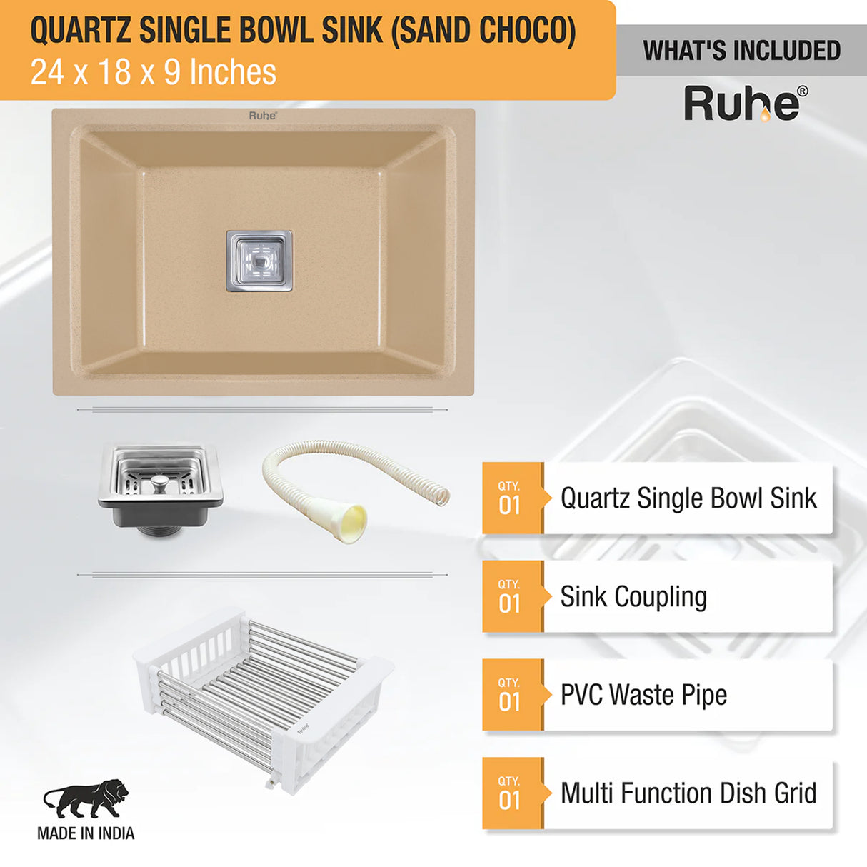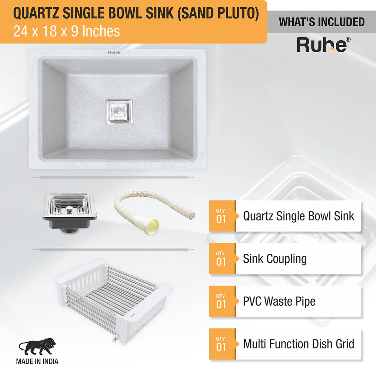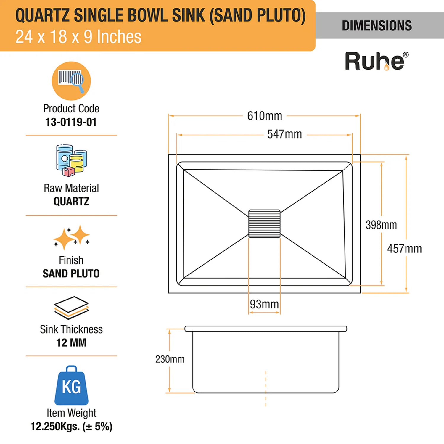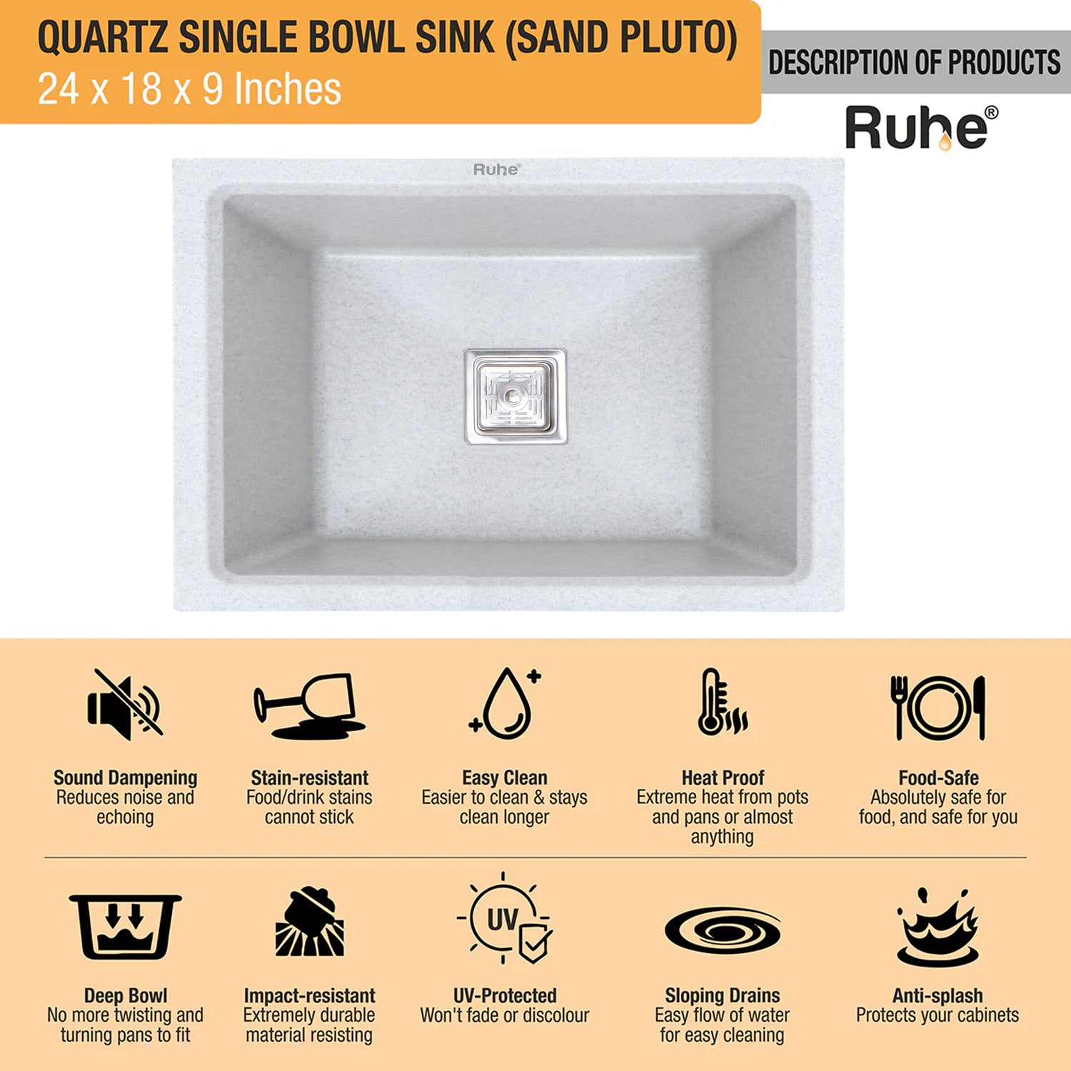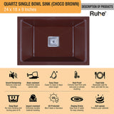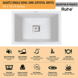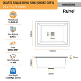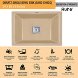 Quartz Single Bowl Kitchen Sink (24 x 18 x 9 Inches)