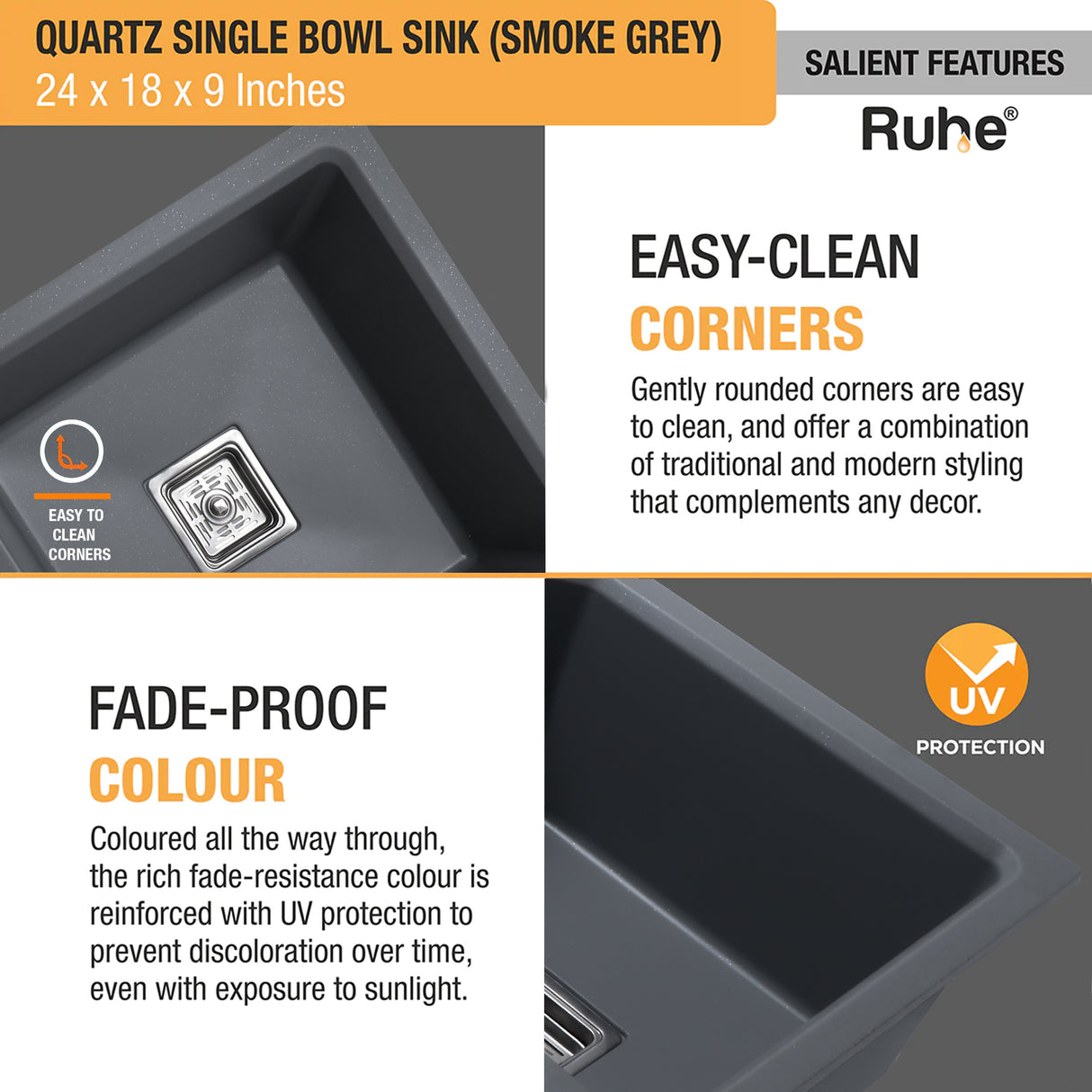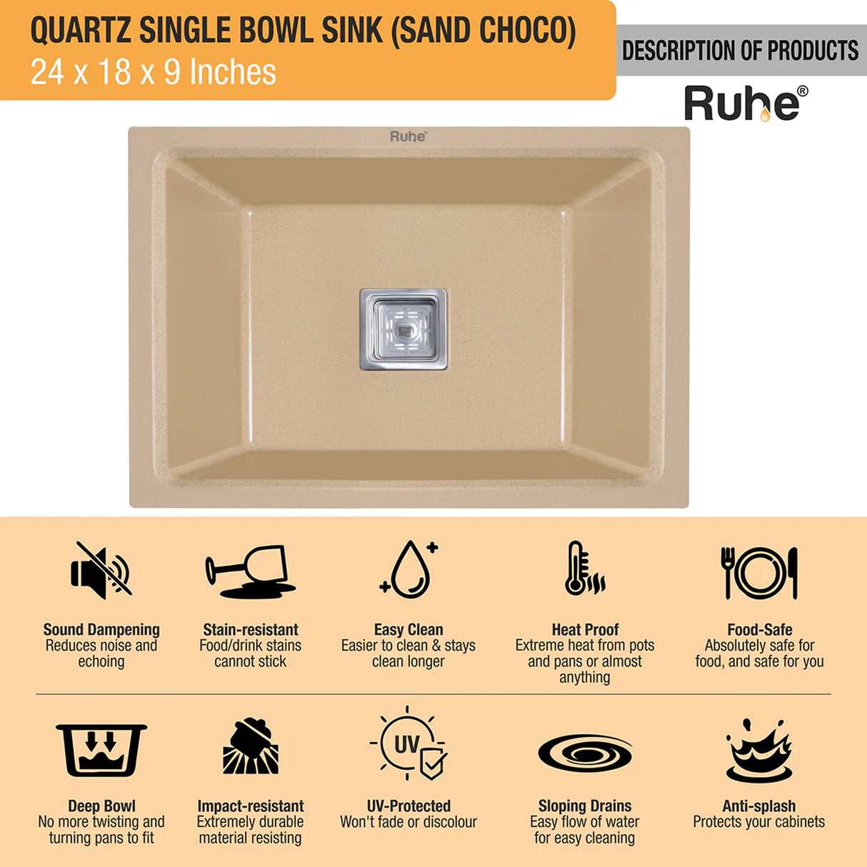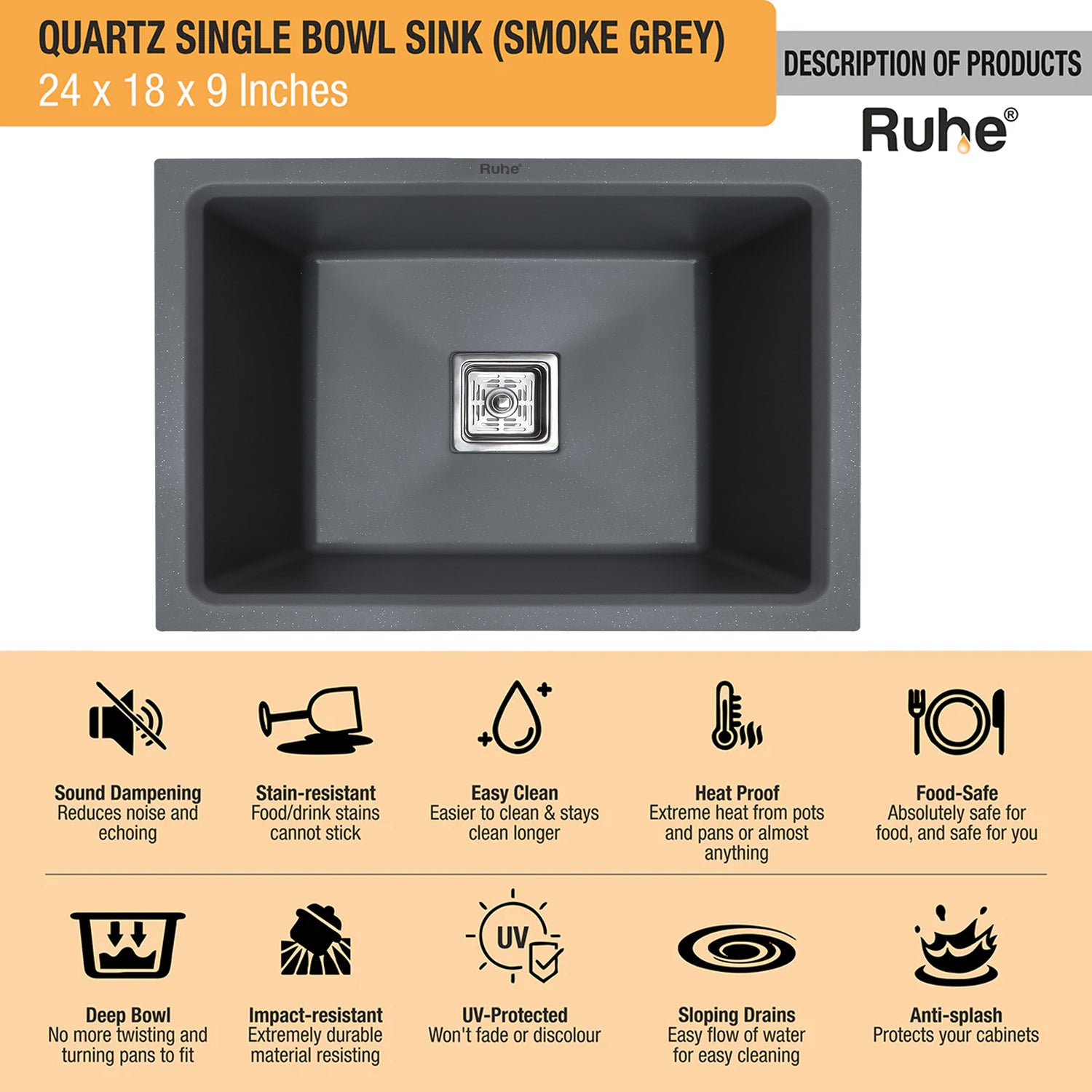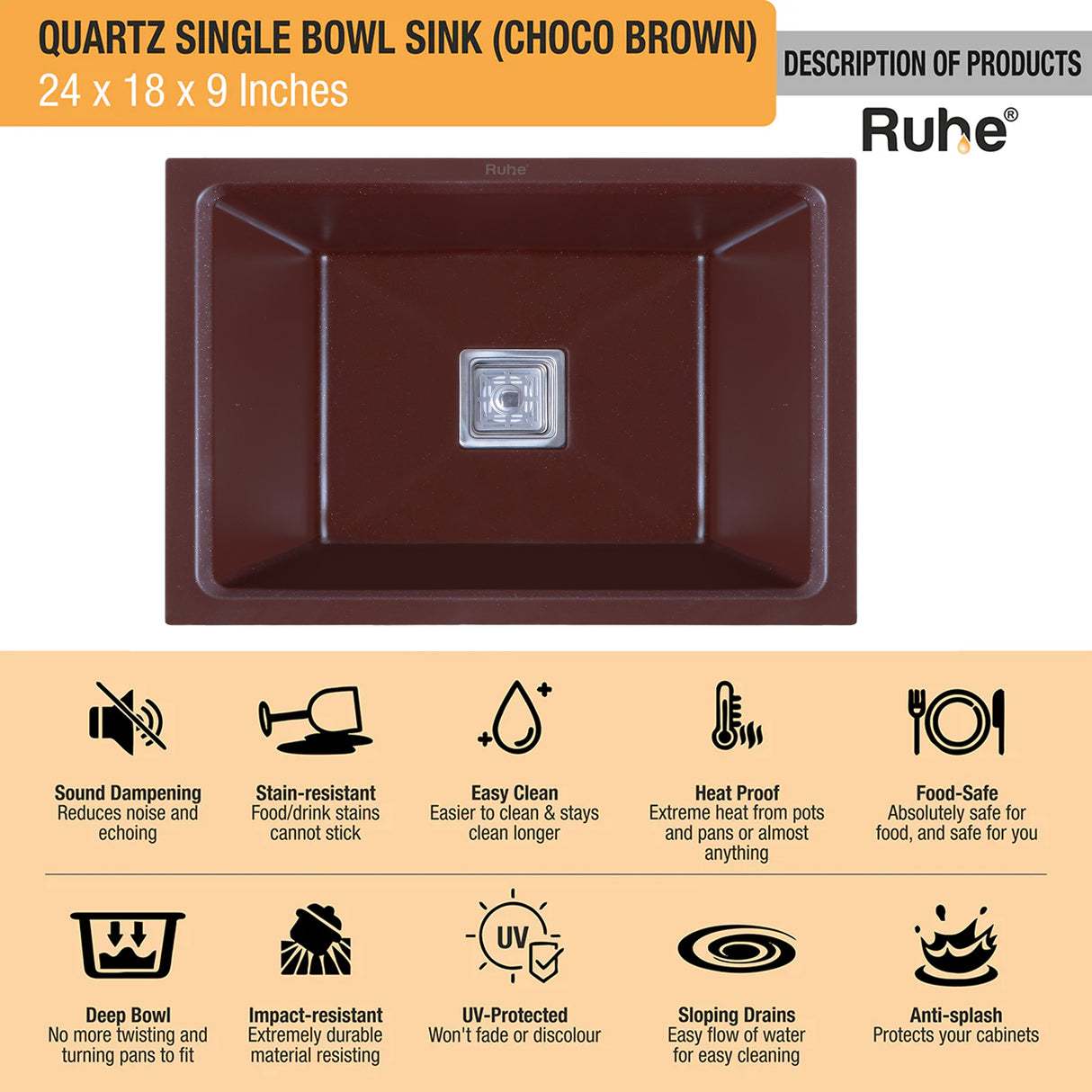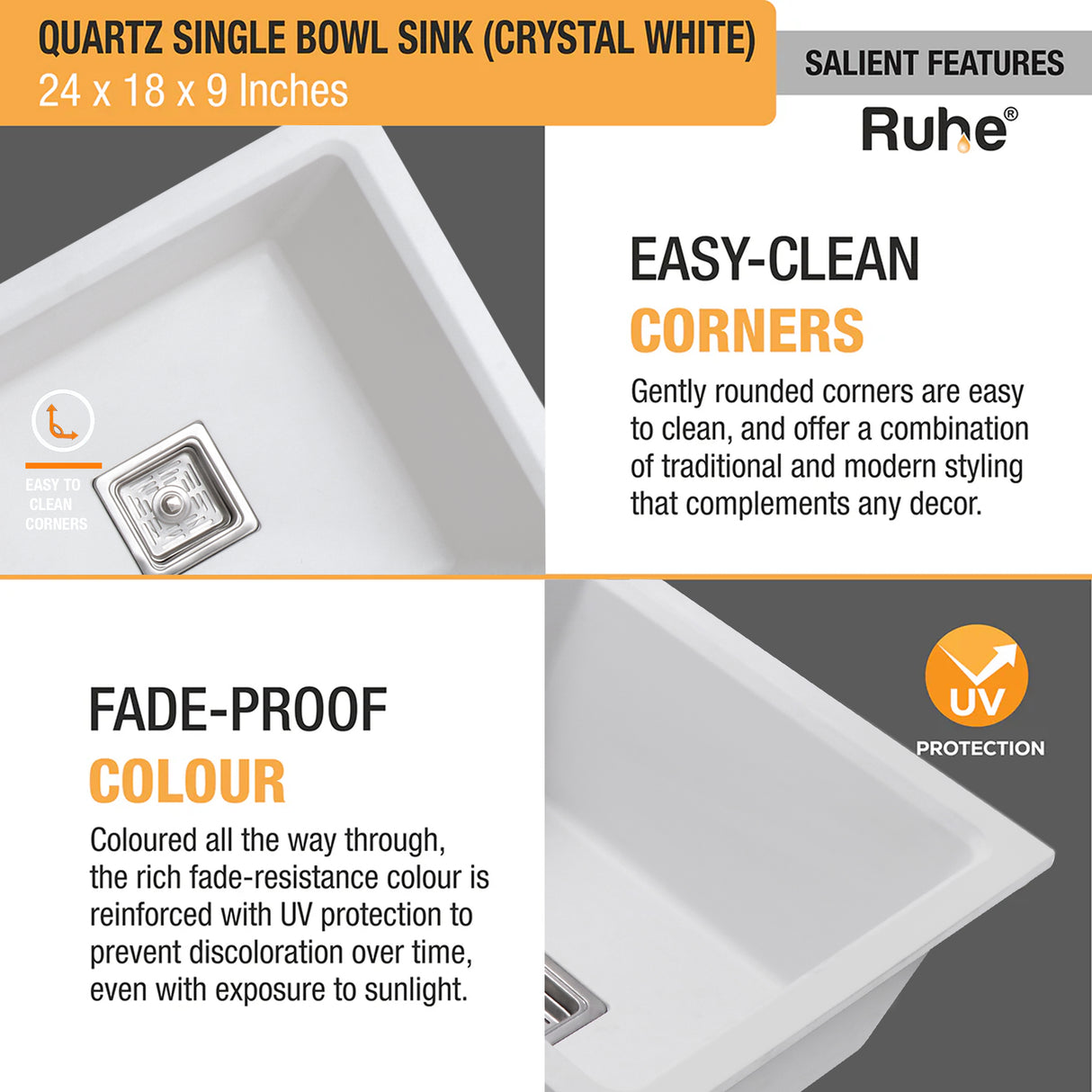Quartz Single Bowl Kitchen Sink (24 x 18 x 9 Inches)