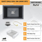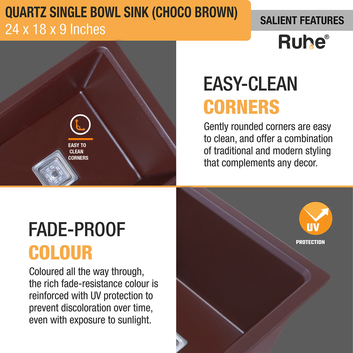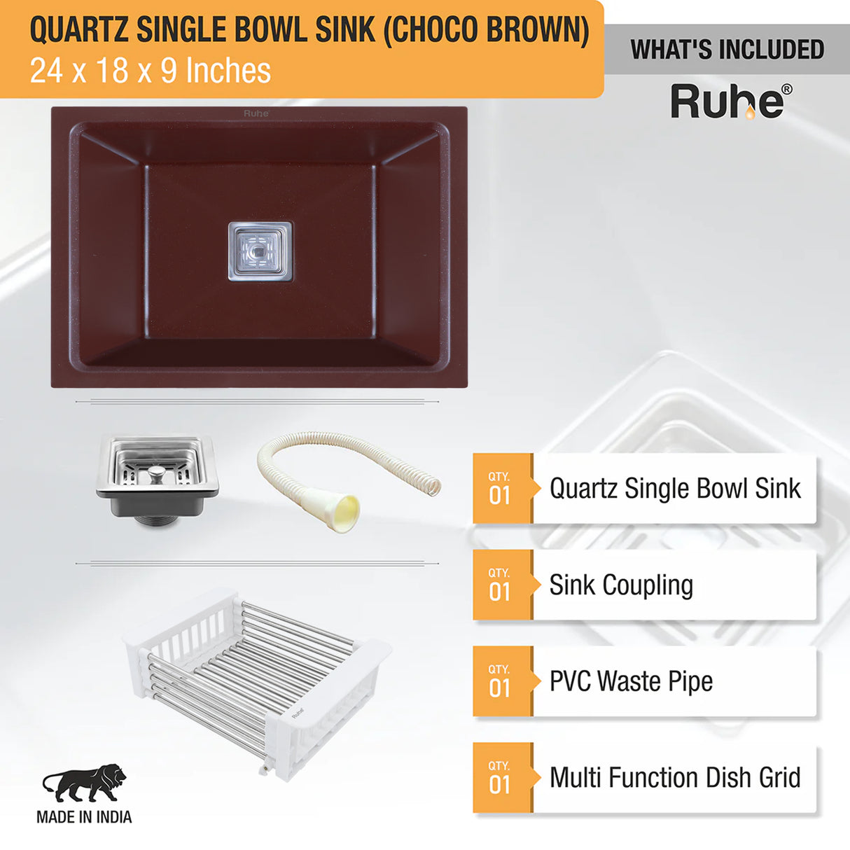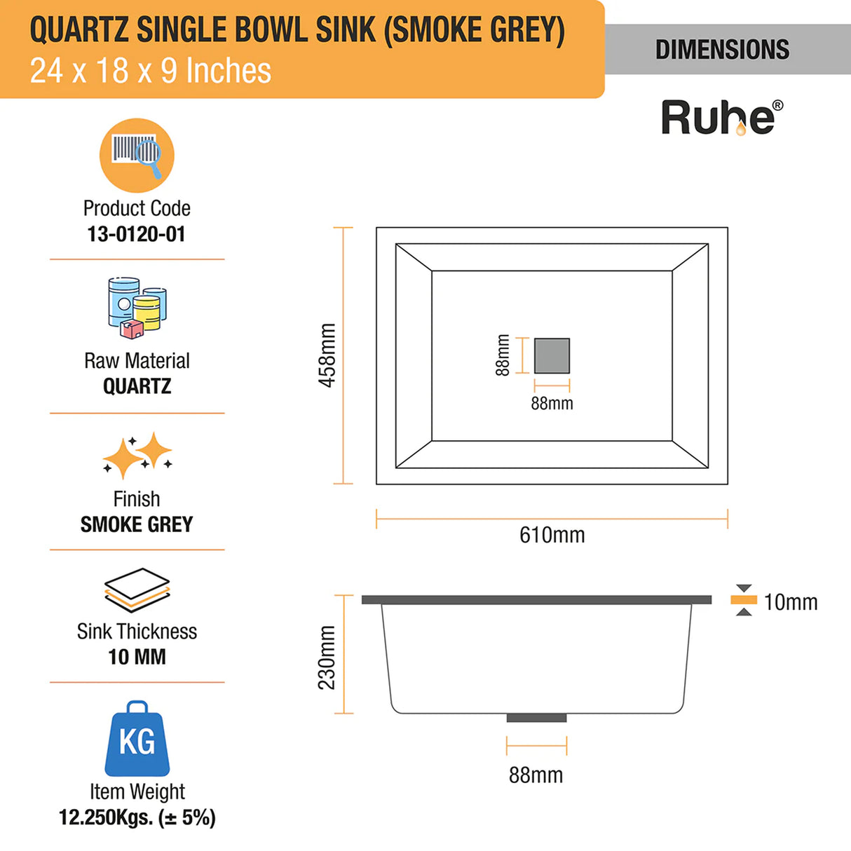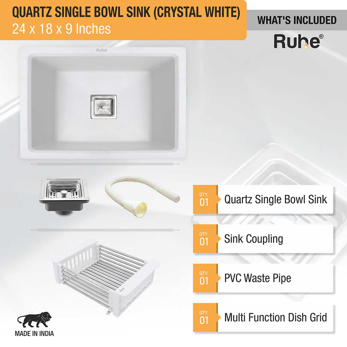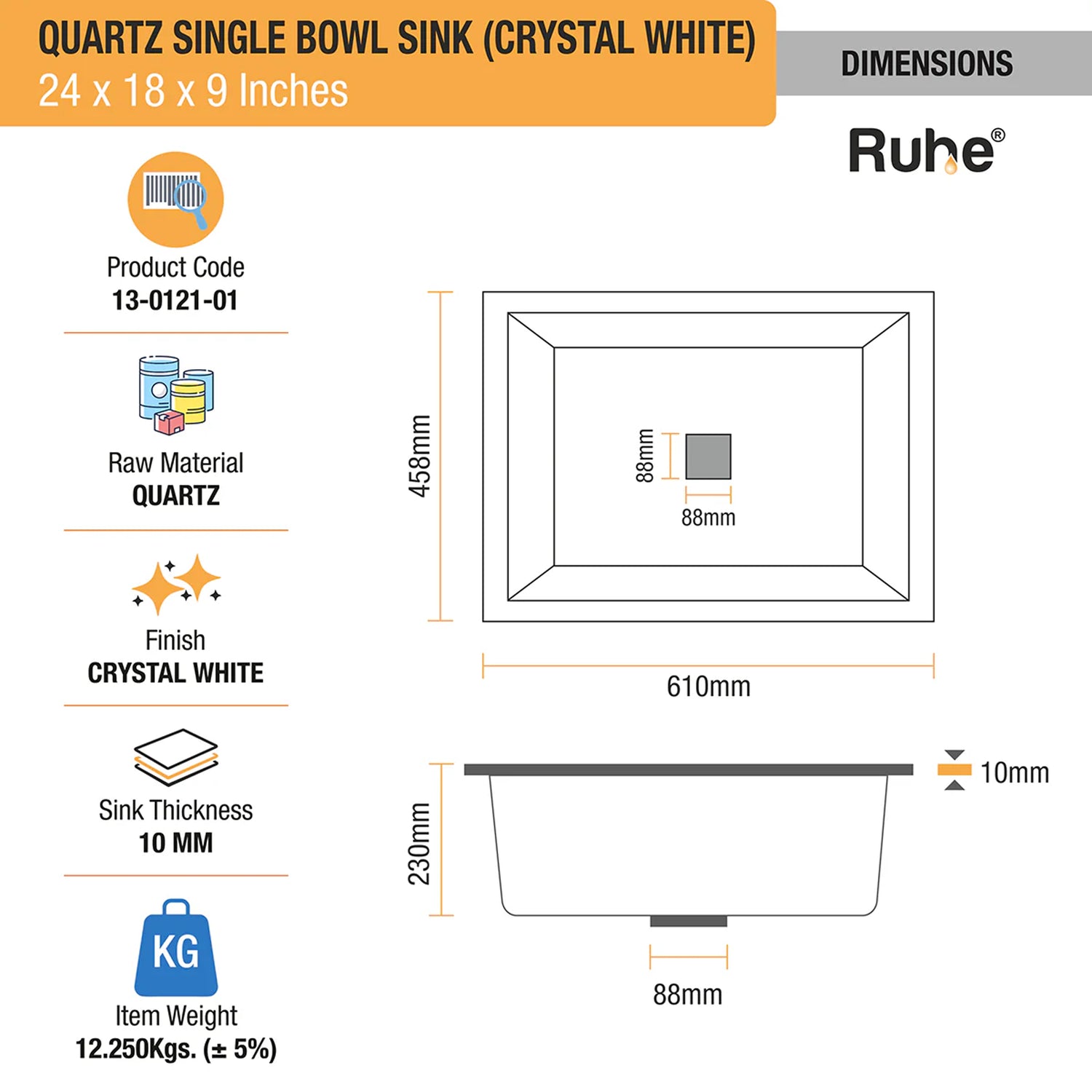 Quartz Single Bowl Kitchen Sink (24 x 18 x 9 Inches)