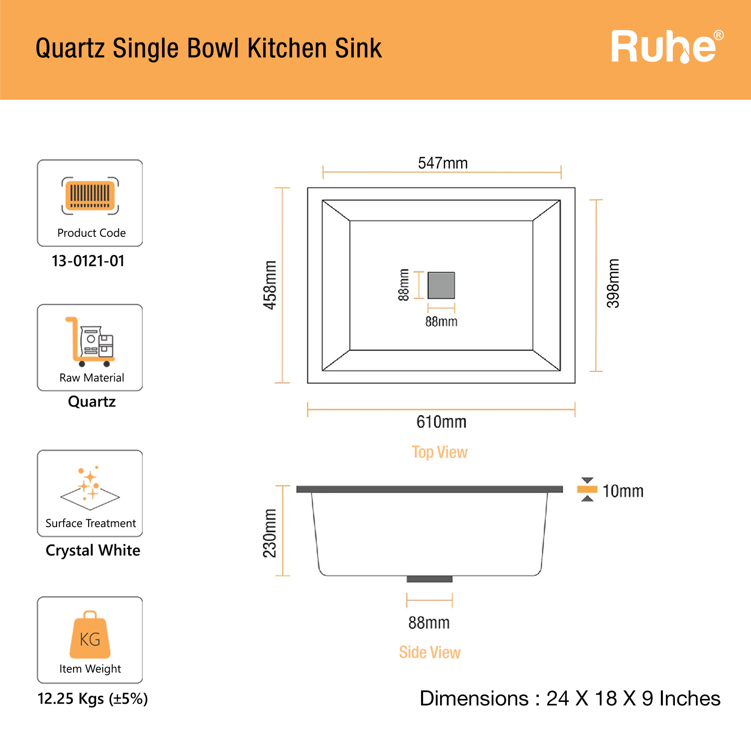 Quartz Single Bowl Kitchen Sink (24 x 18 x 9 Inches)