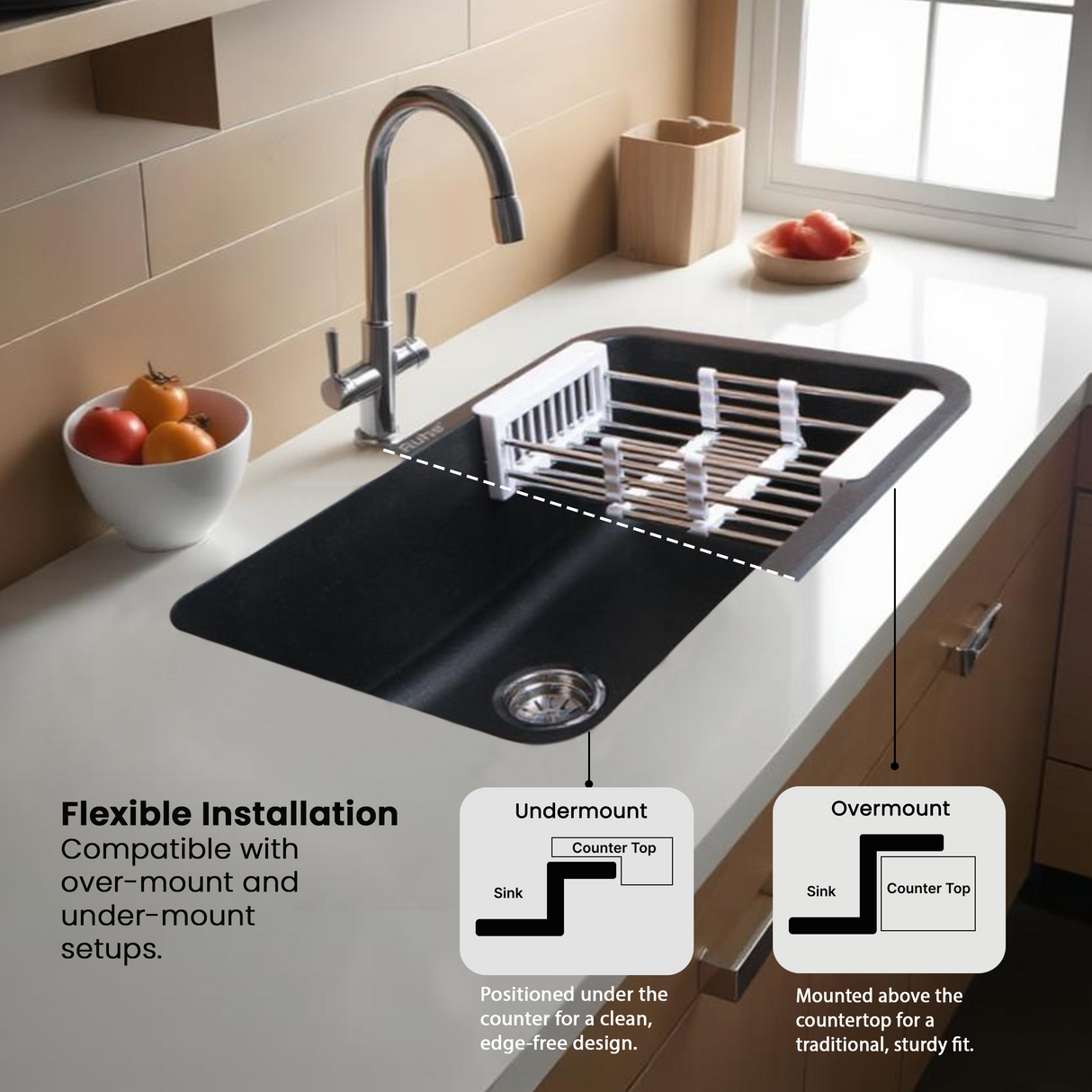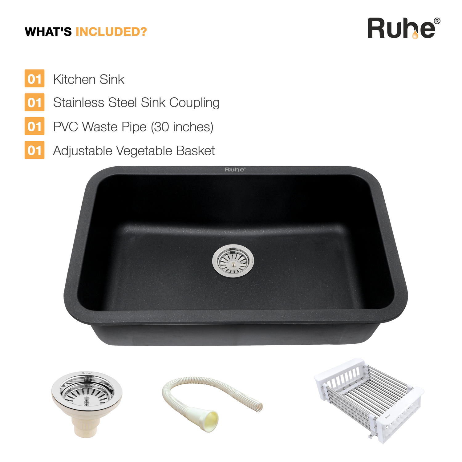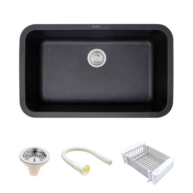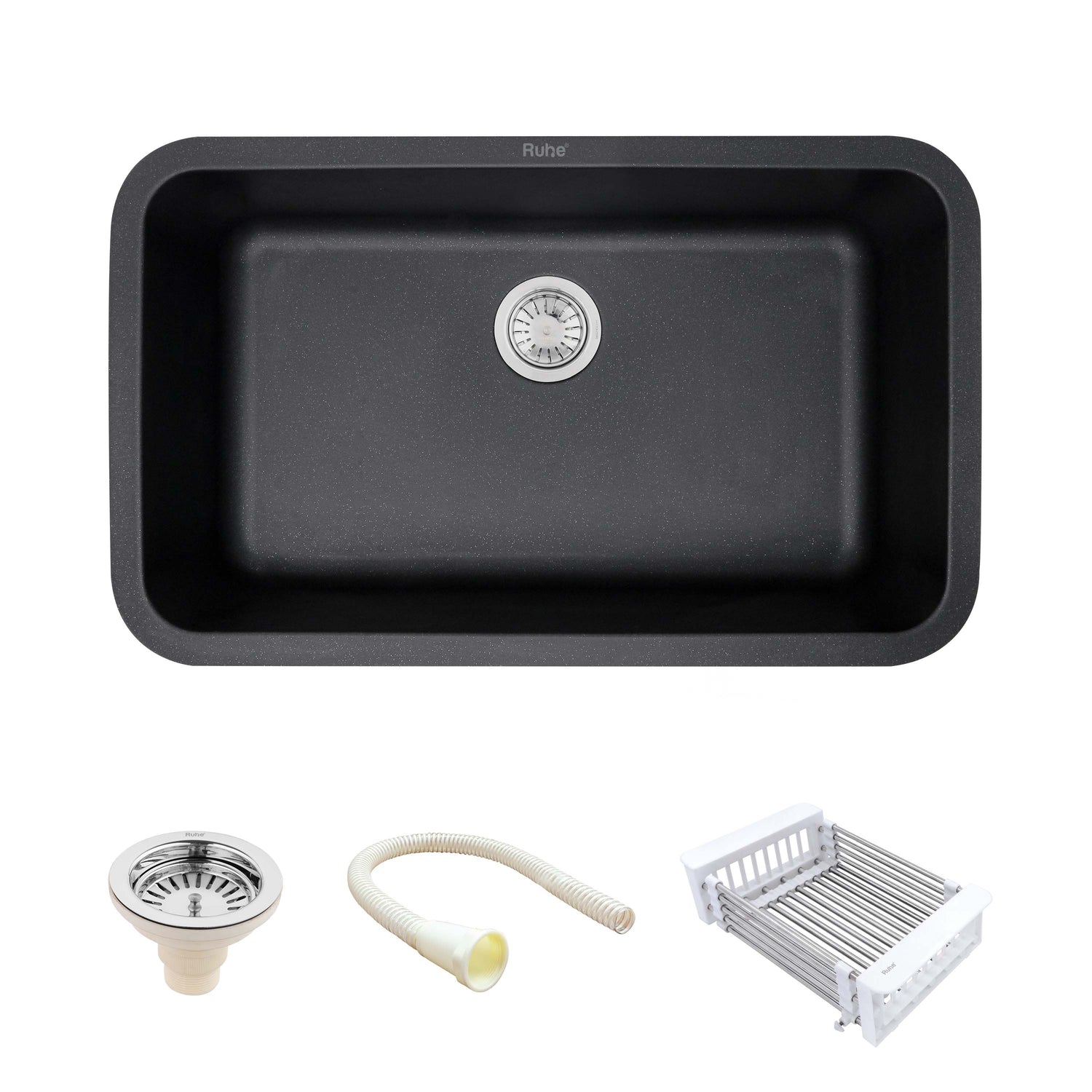 Black Quartz Single Bowl Kitchen Sink (31 x 19 x 9 Inches)