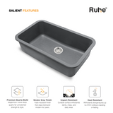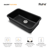 Matte Black Quartz Single Bowl Kitchen Sink  (31 x 19 x 9 inches) - by Ruhe