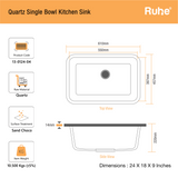 Matte Black Quartz Single Bowl Kitchen Sink  (24 x 18 x 9 inches) - by Ruhe