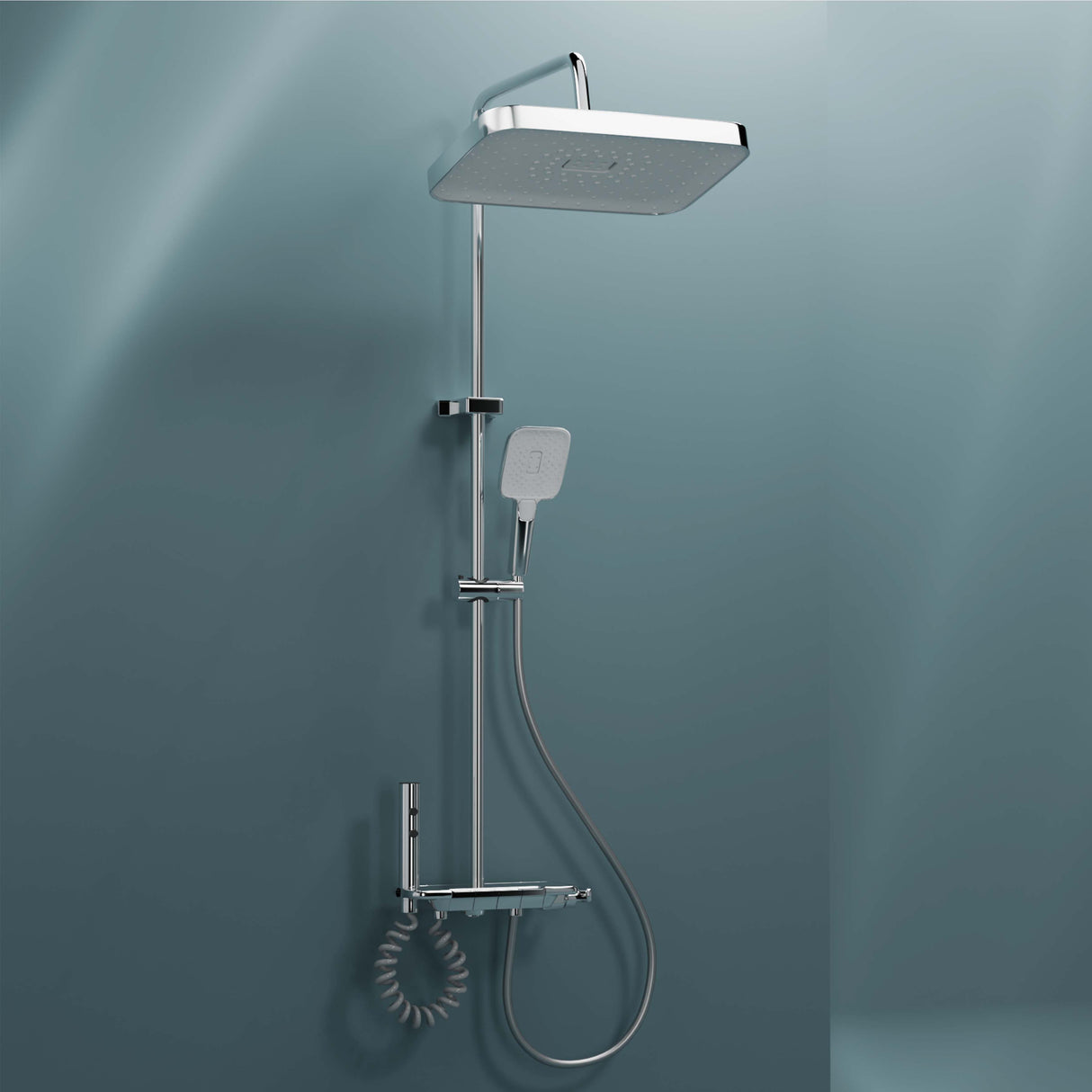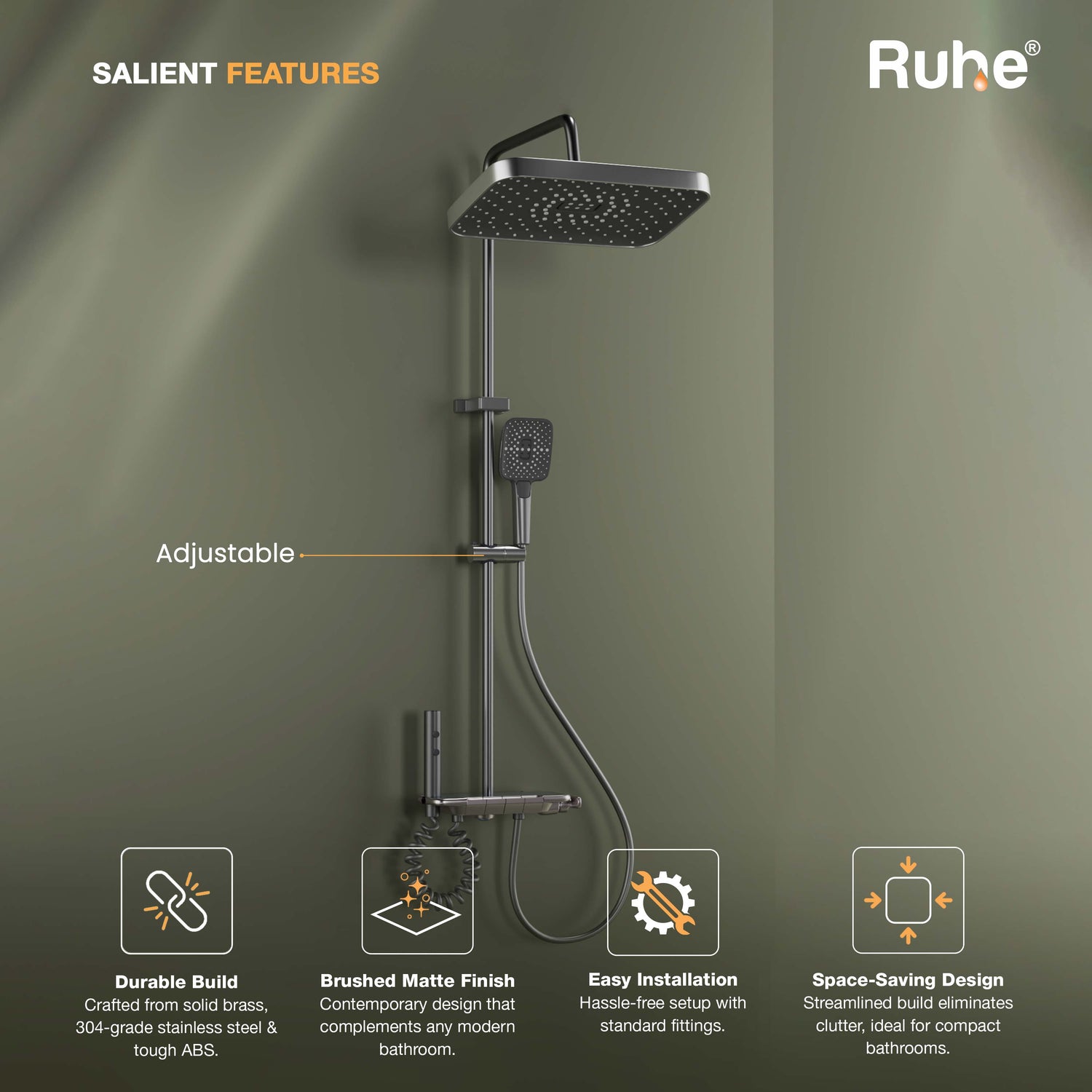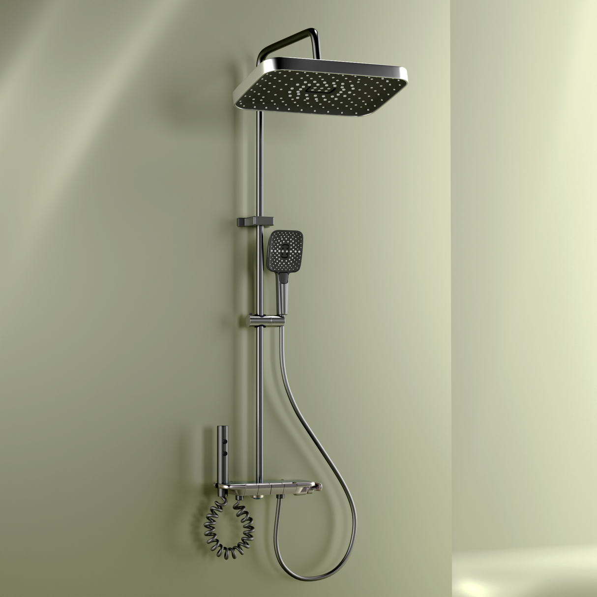 • Adjustable overhead shower for wide, full-body coverage