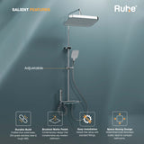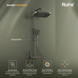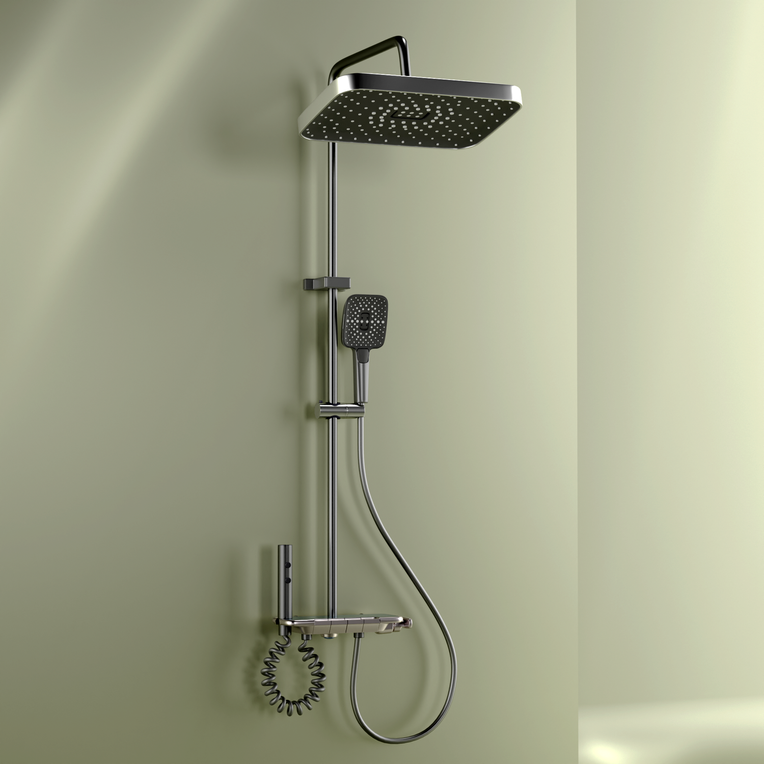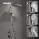 Made from solid brass ingot, this 4-in-1 Smart Shower Panel offers independent control of overhead shower, hand shower, spray gun, and tub spout.