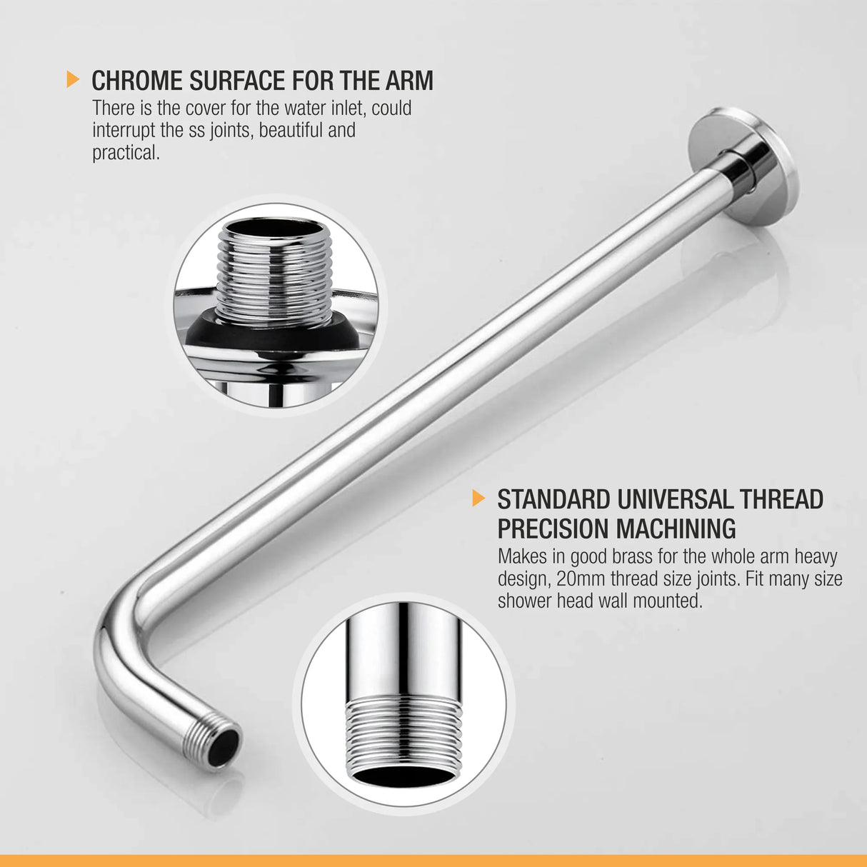 Also Referred as:Â adjustable shower arm, shower head arm, long shower arm, rain shower arm, ceiling shower arm, square shower arm, rain head shower arm, high rise shower arm, shower arm mount, shower rose arm, shower arm pipe, shower arm connector, wall shower arm, overhead shower arm, ceiling mount shower arm, wall mounted shower arm, overhead shower arm, shower head rod, rainfall shower arm.