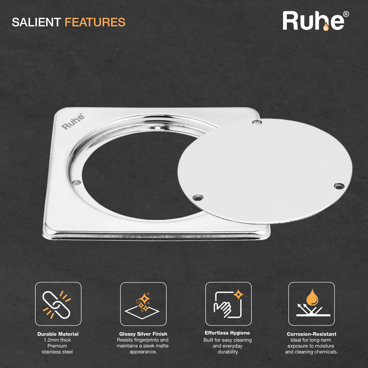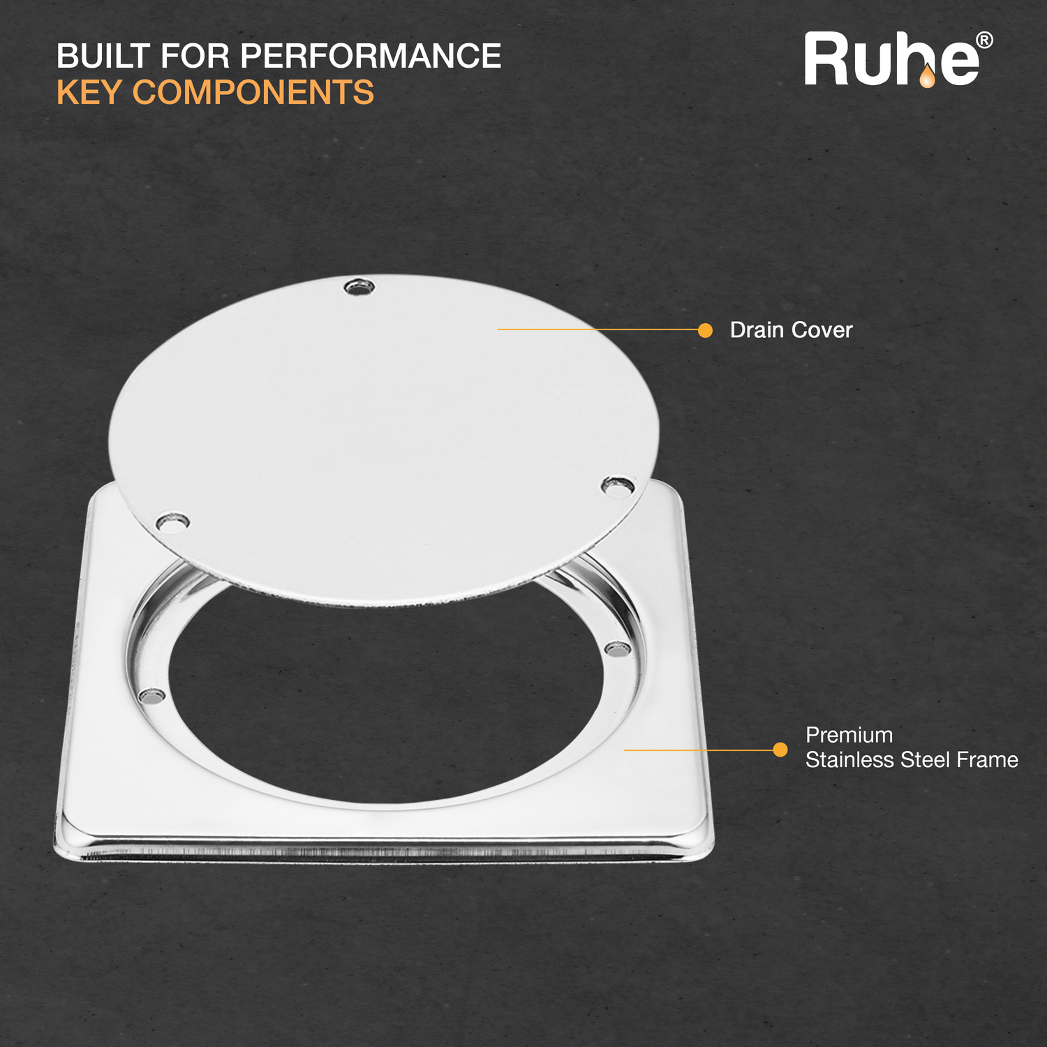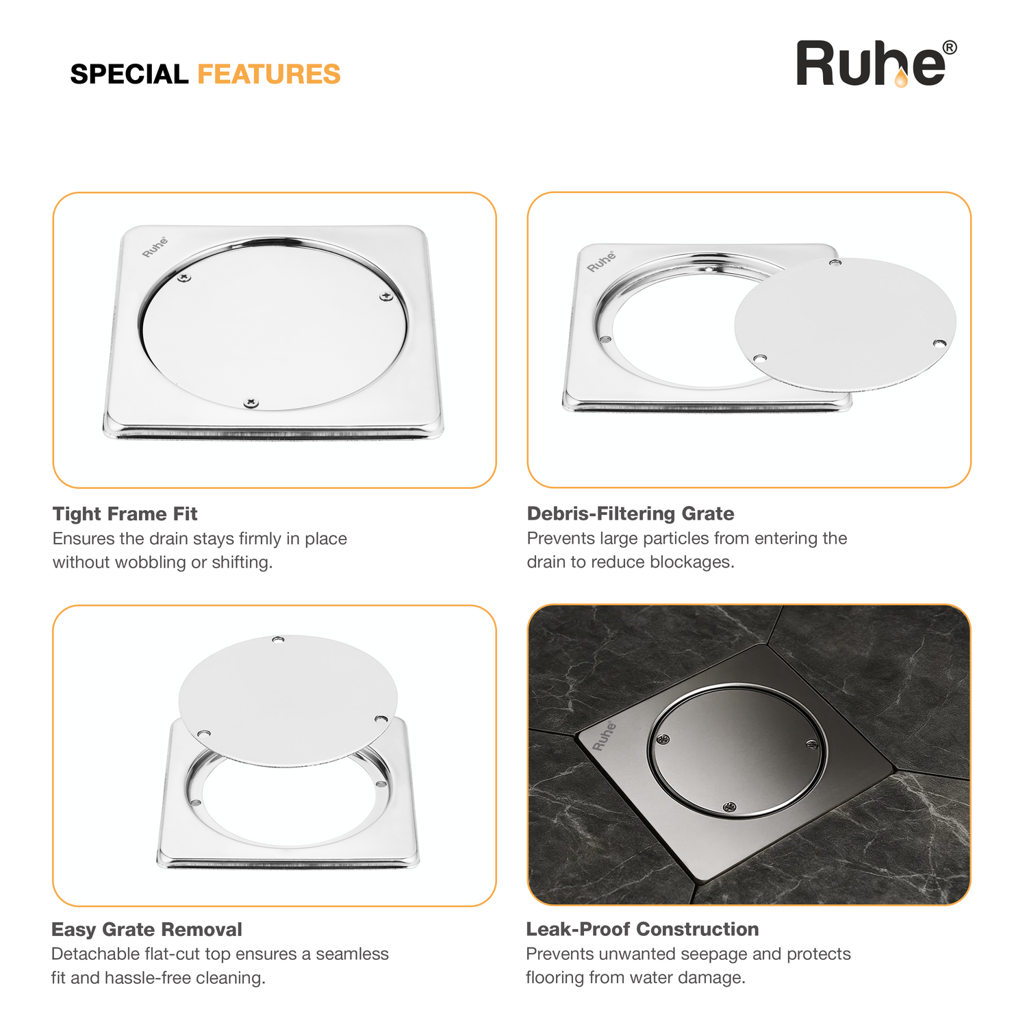 Ruhe Square Clean Out Floor Drain is an efficient, easily removable, maintenance drain for big establishments used to clean the long drain pipes, and comes with 10 years of warranty.