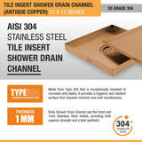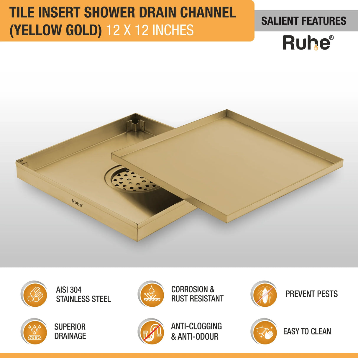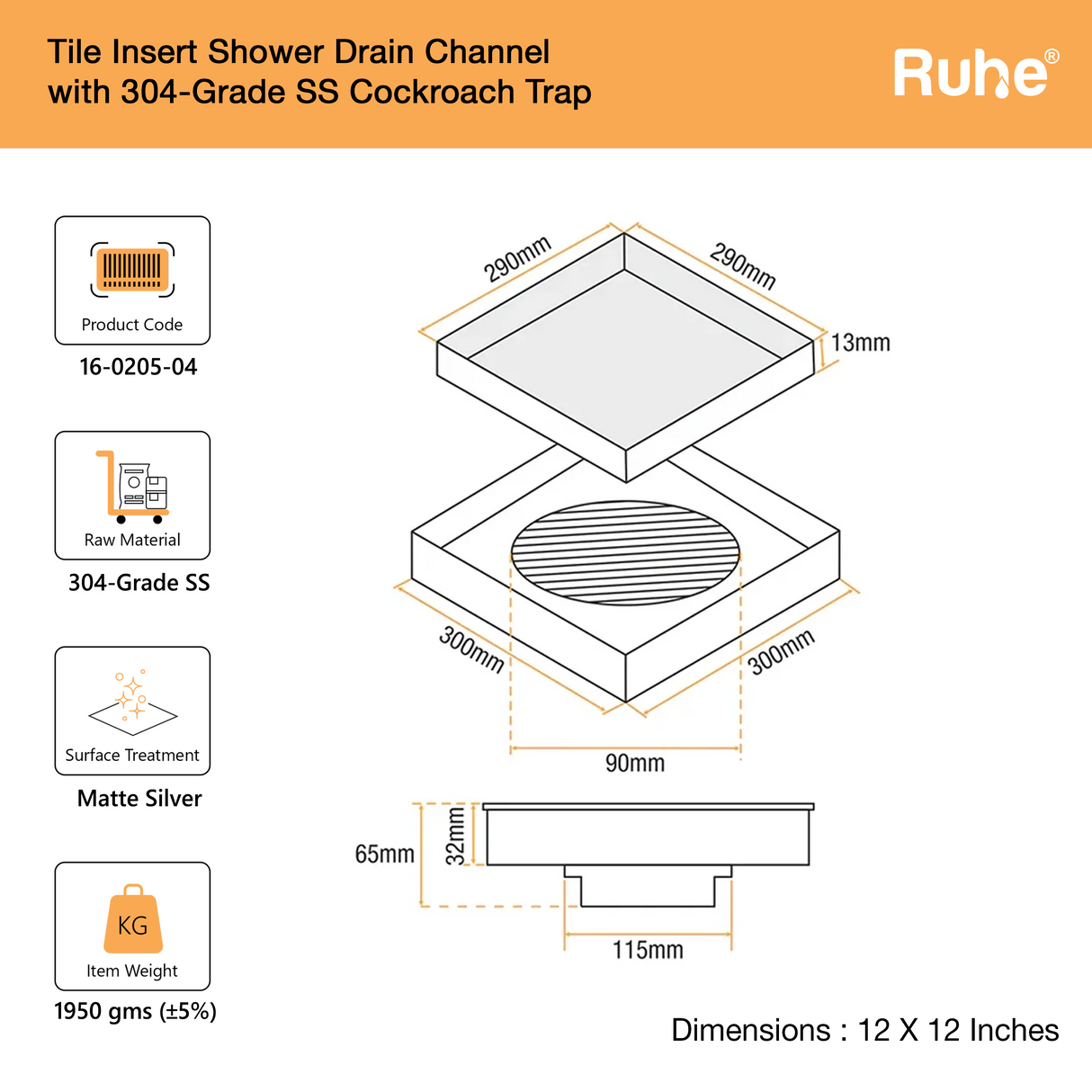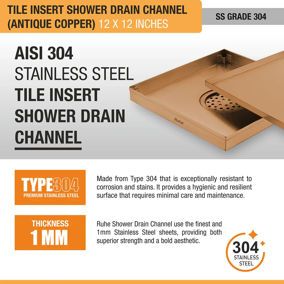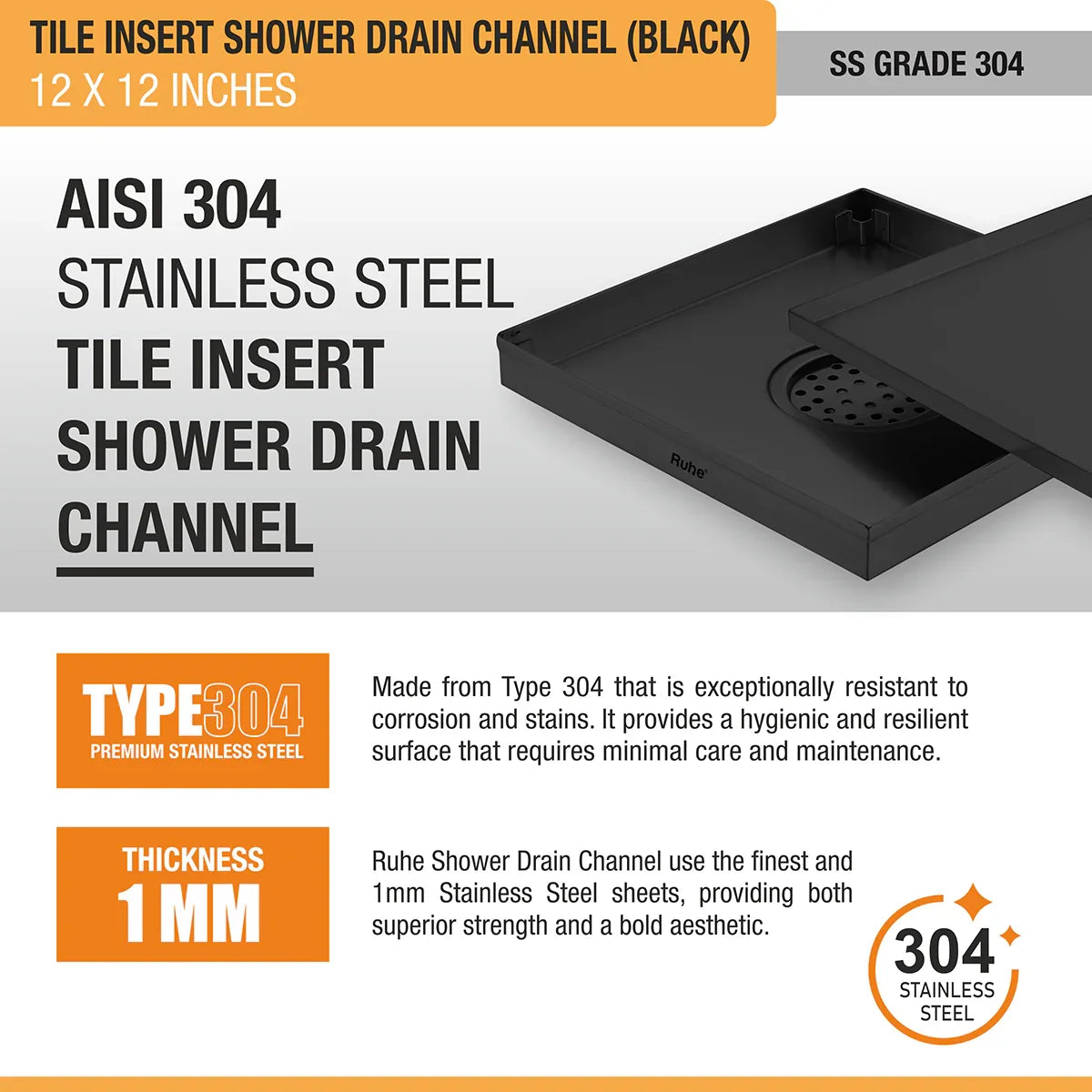Tile-Insert Shower Drain Channel (12 x 12 Inches)