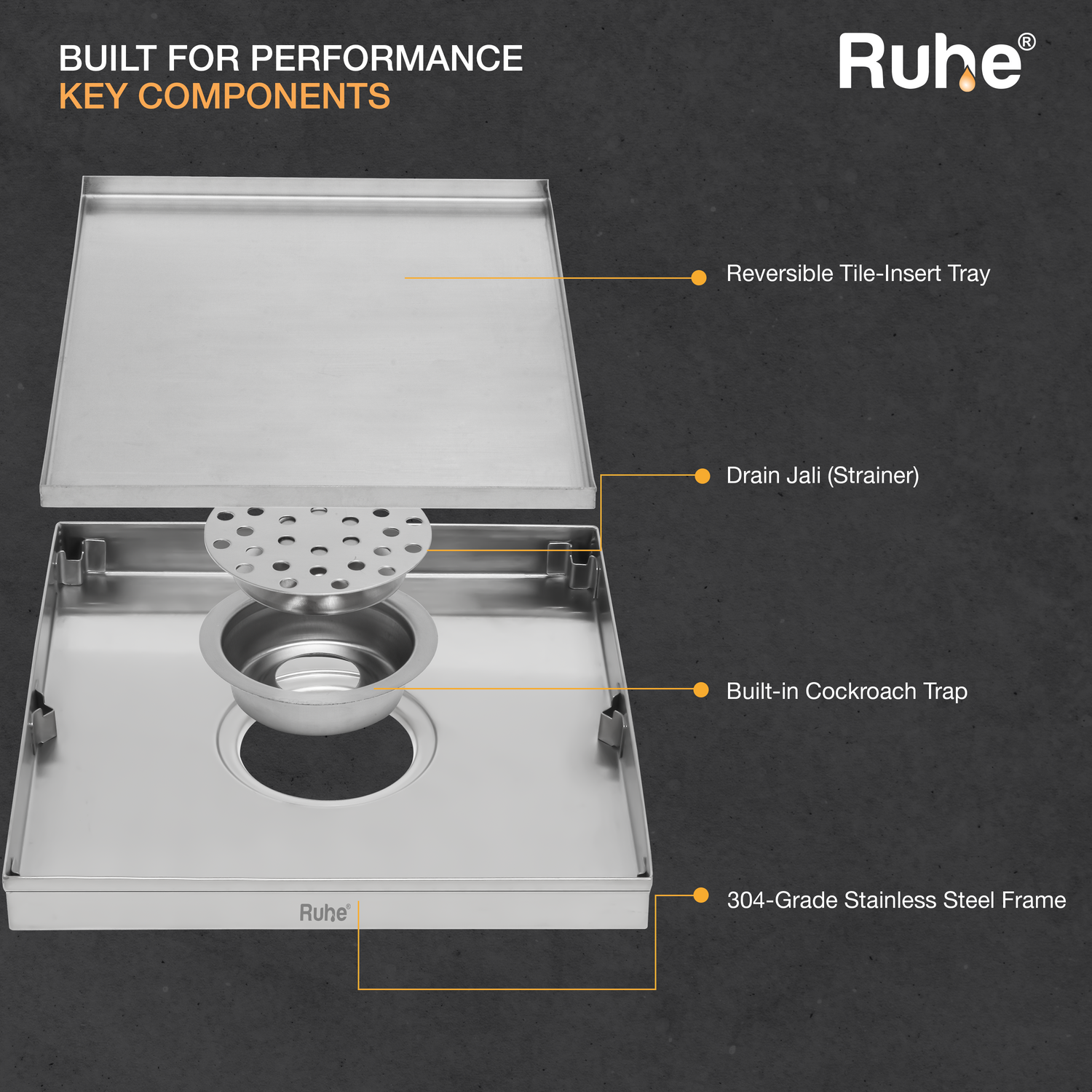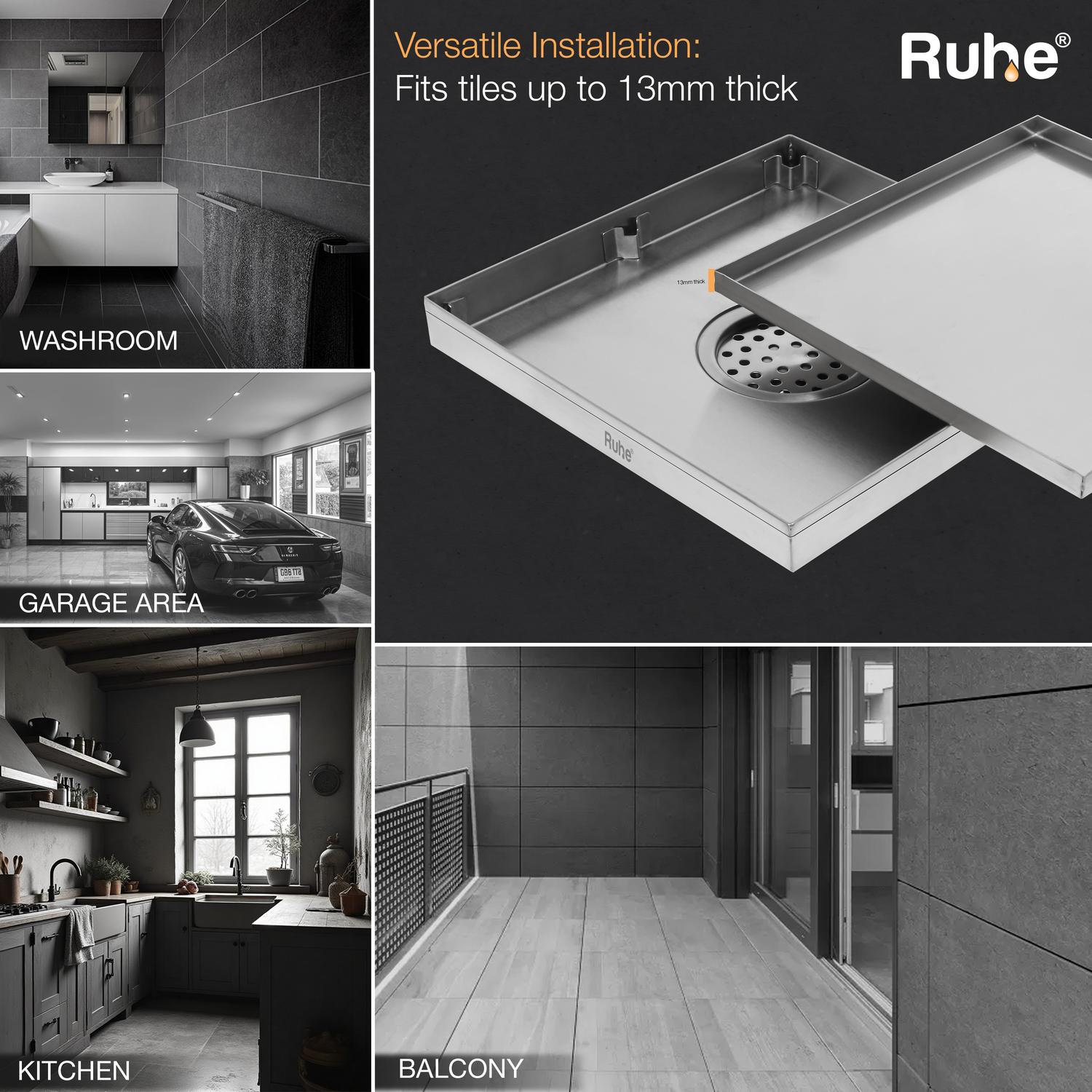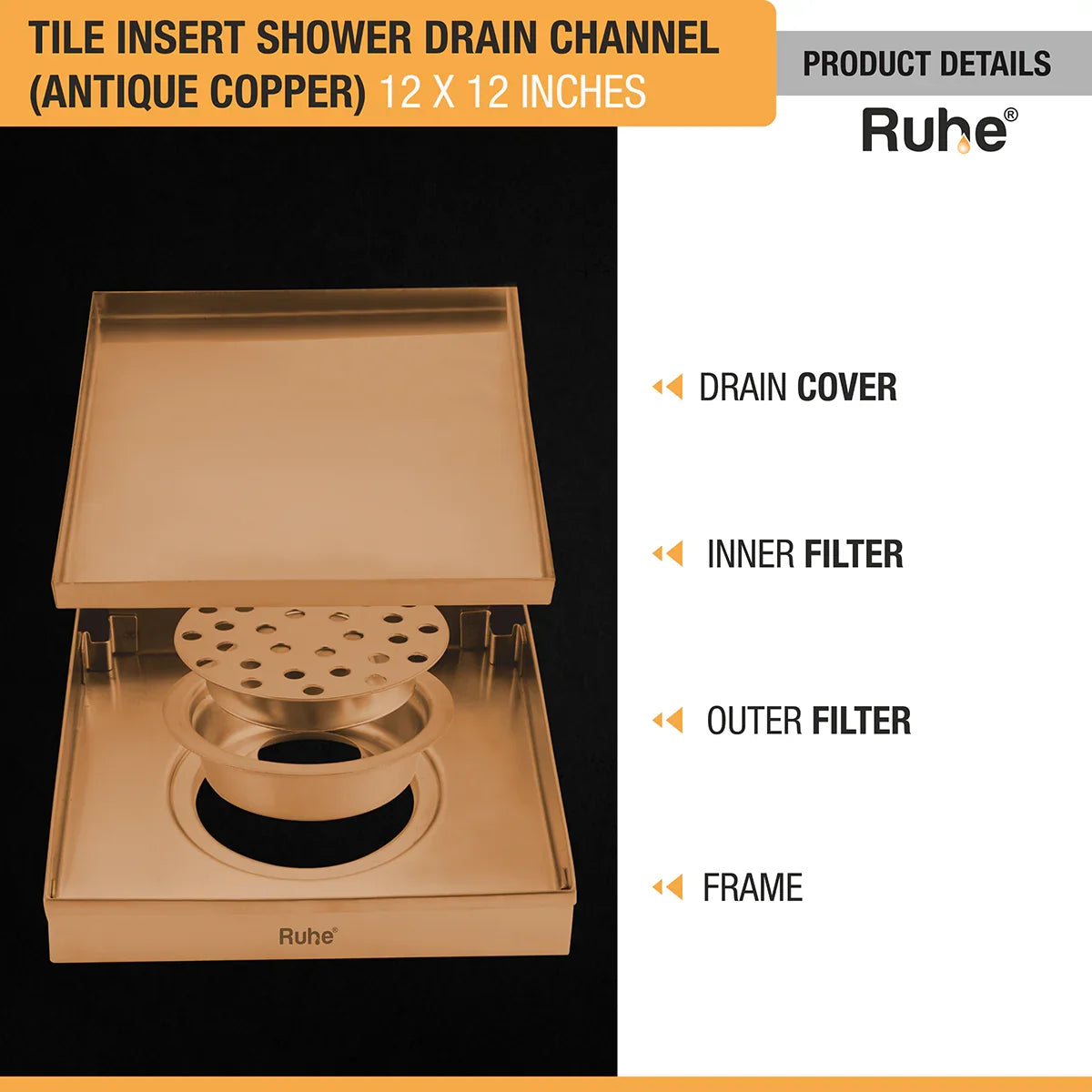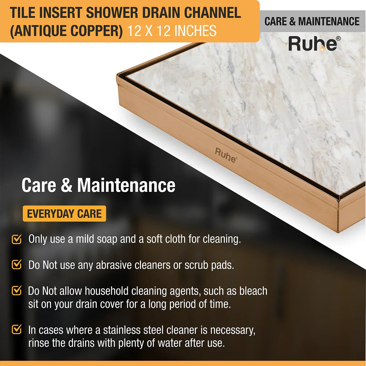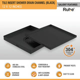 Tile-Insert Shower Drain Channel (12 x 12 Inches)