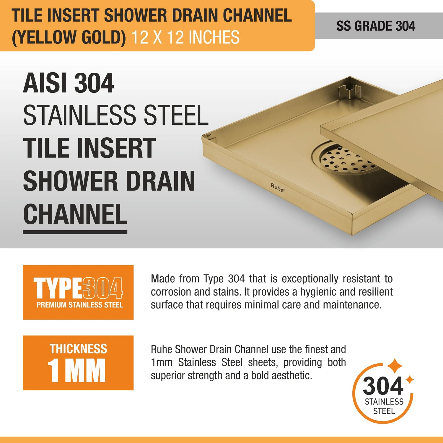 Tile-Insert Shower Drain Channel (12 x 12 Inches)