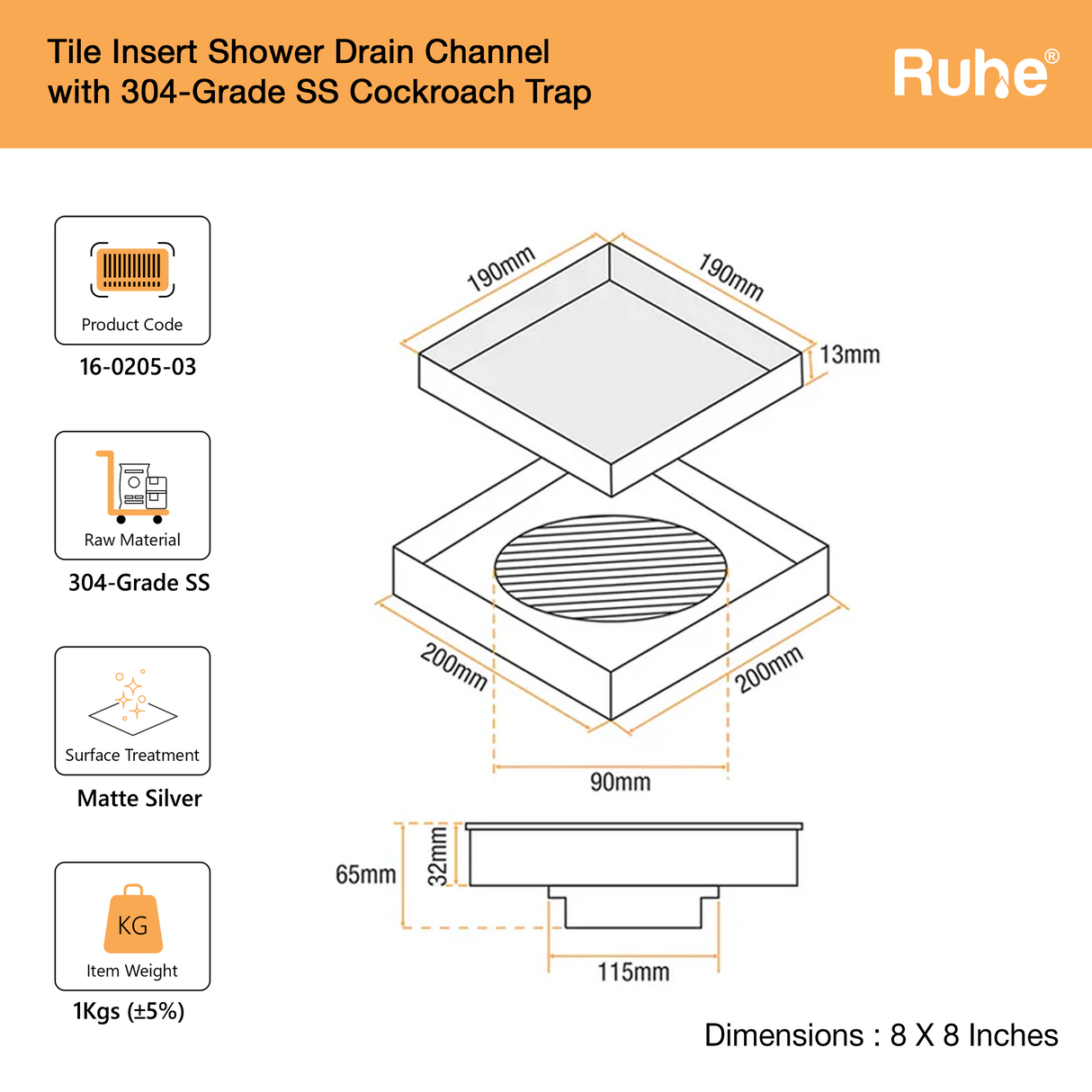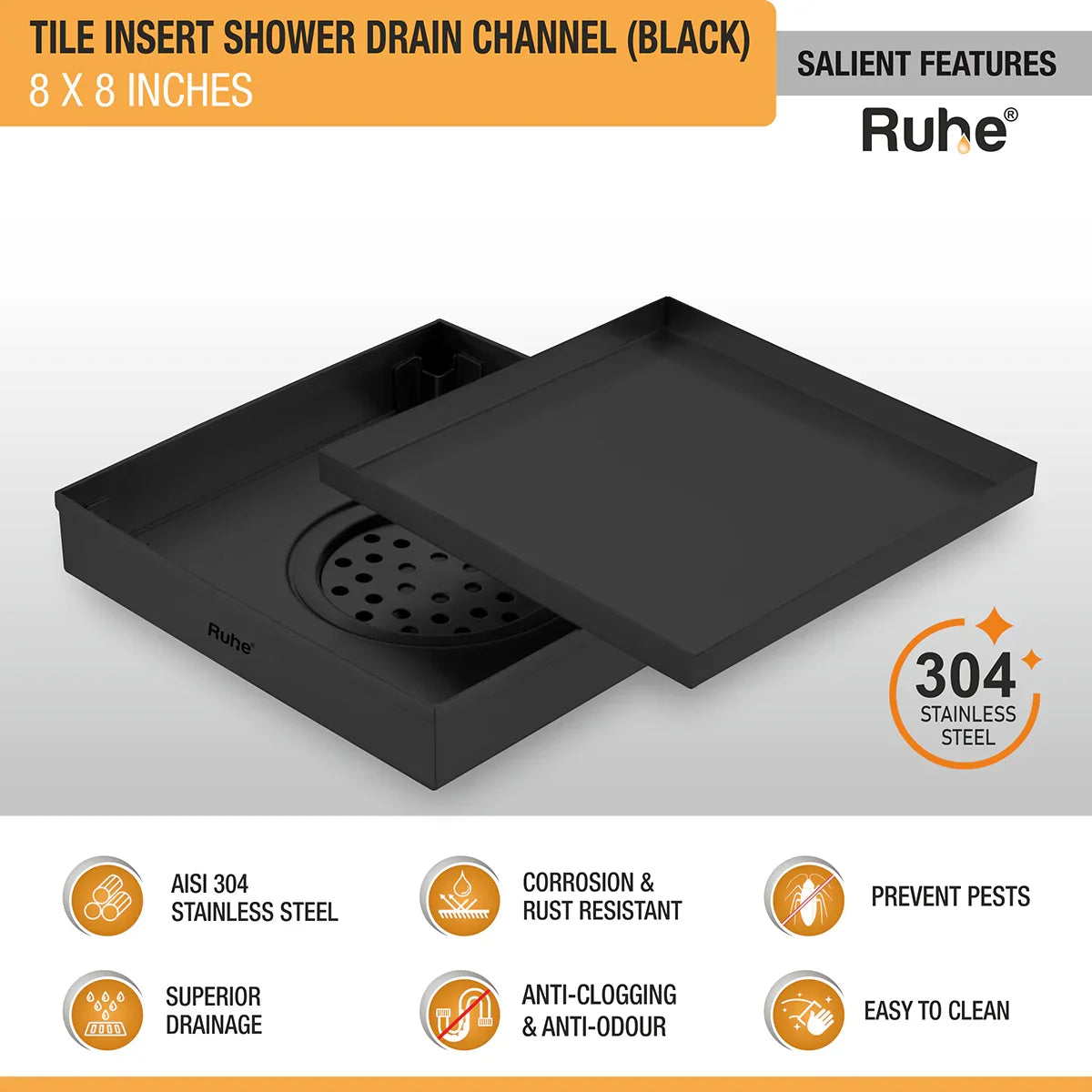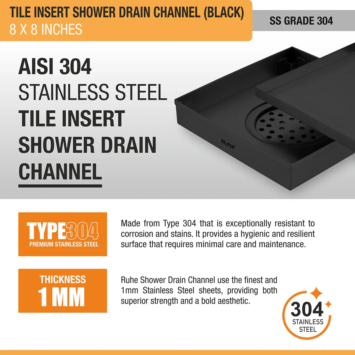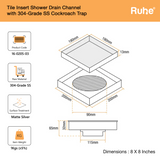 Tile-Insert Shower Drain Channel (8 x 8 Inches)