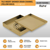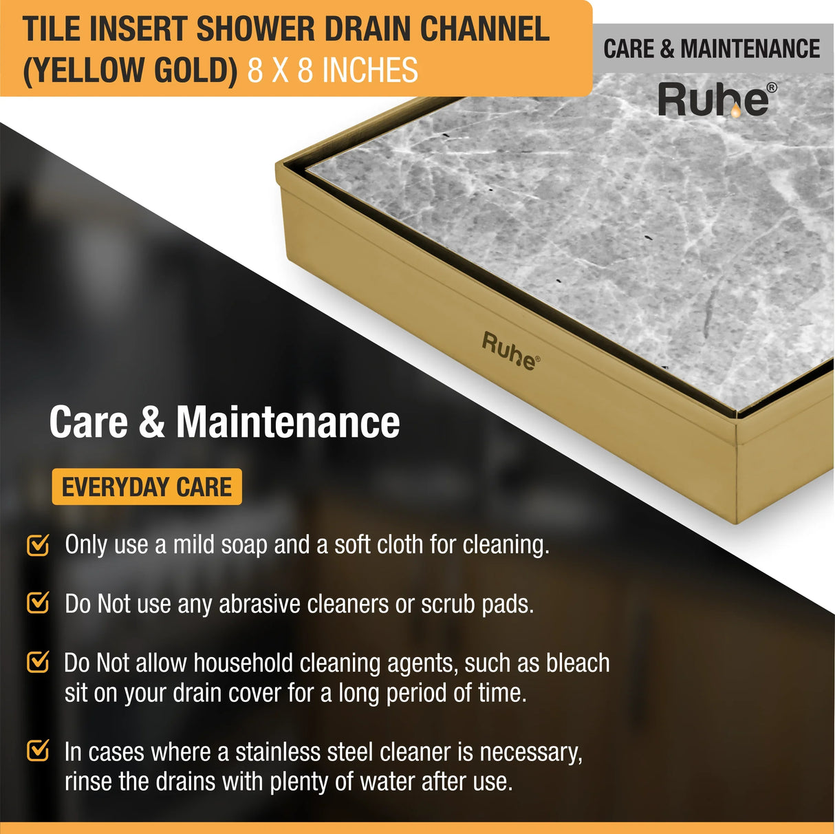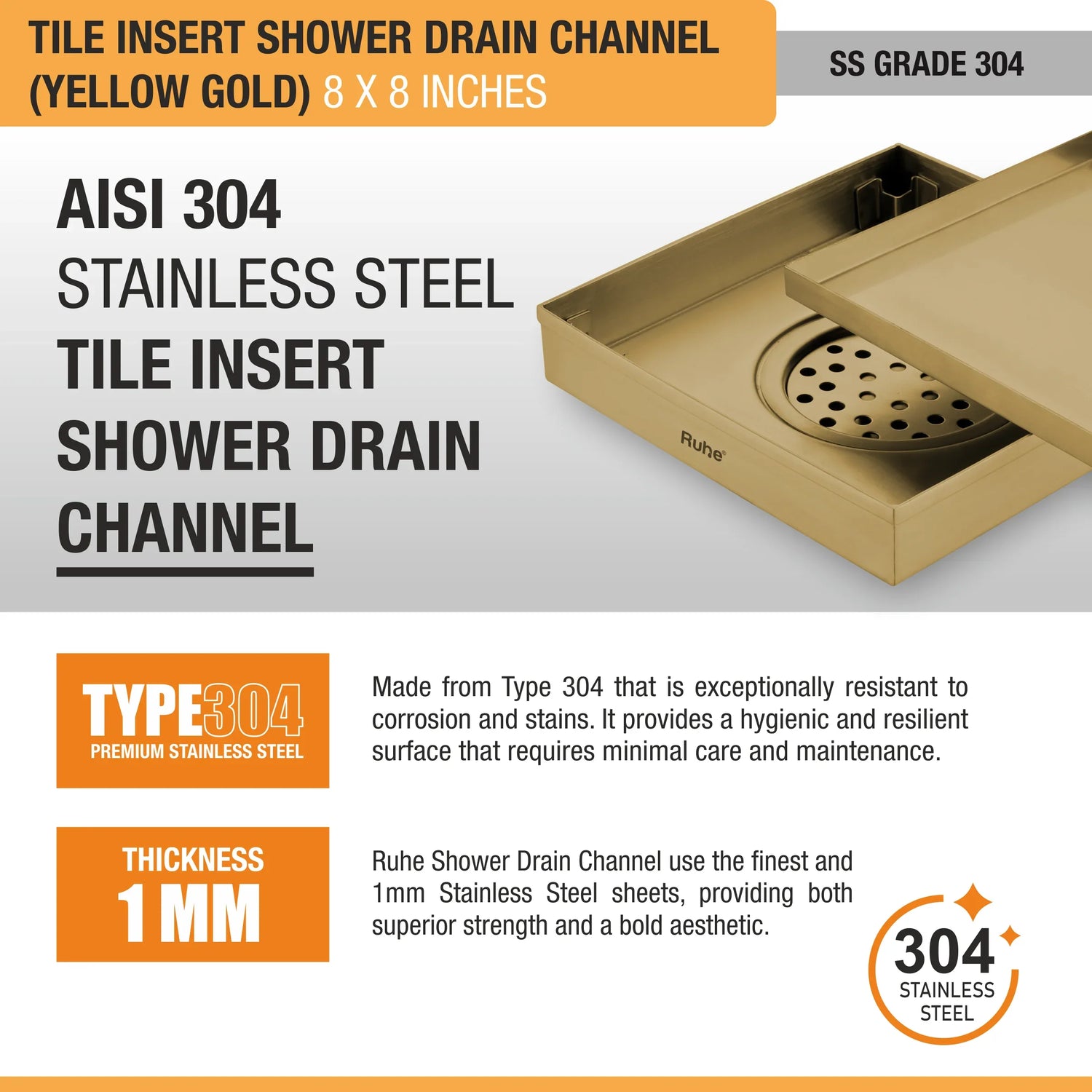 Tile-Insert Shower Drain Channel (8 x 8 Inches) - Yellow Gold is backordered and will ship as soon as it is back in stock.