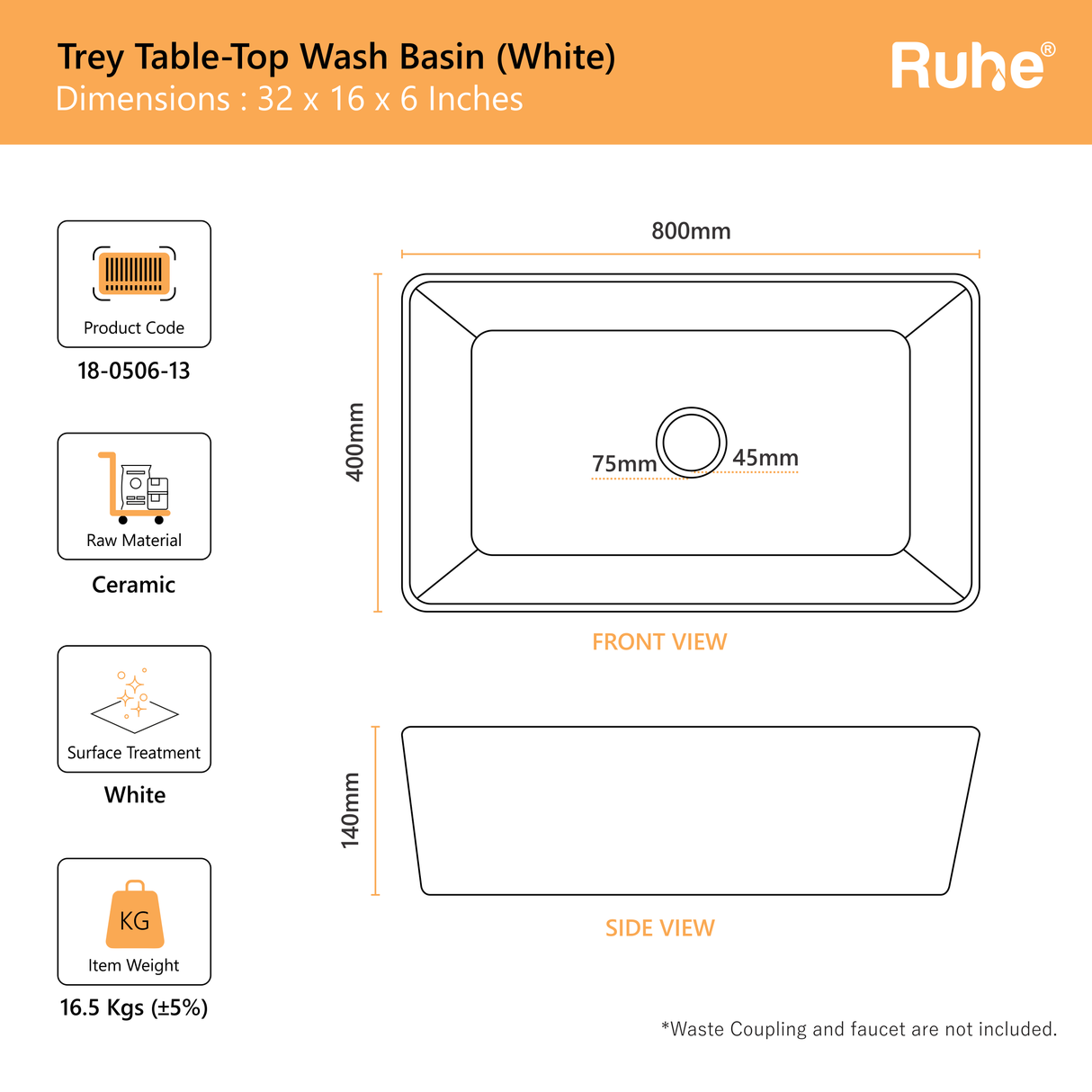 PACKAGE CONTENTS: The package includes 1 wash basin. [Please note that the faucet and waste coupling are not included.]