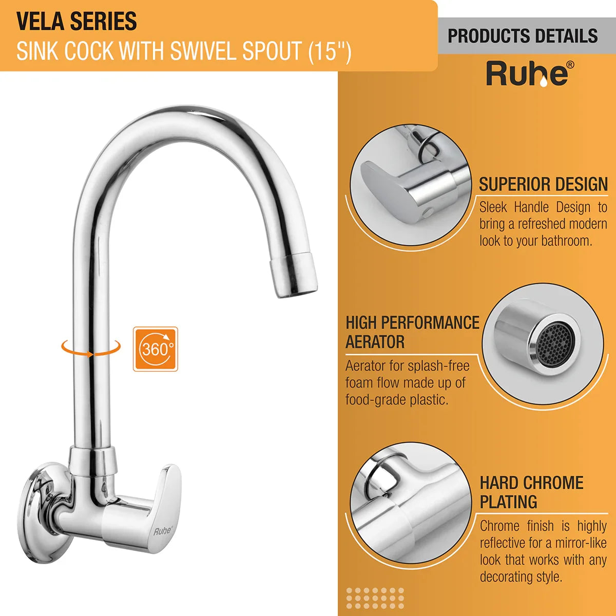 Vela Sink Tap with Medium (15 inches) Round Swivel Spout Brass Faucet