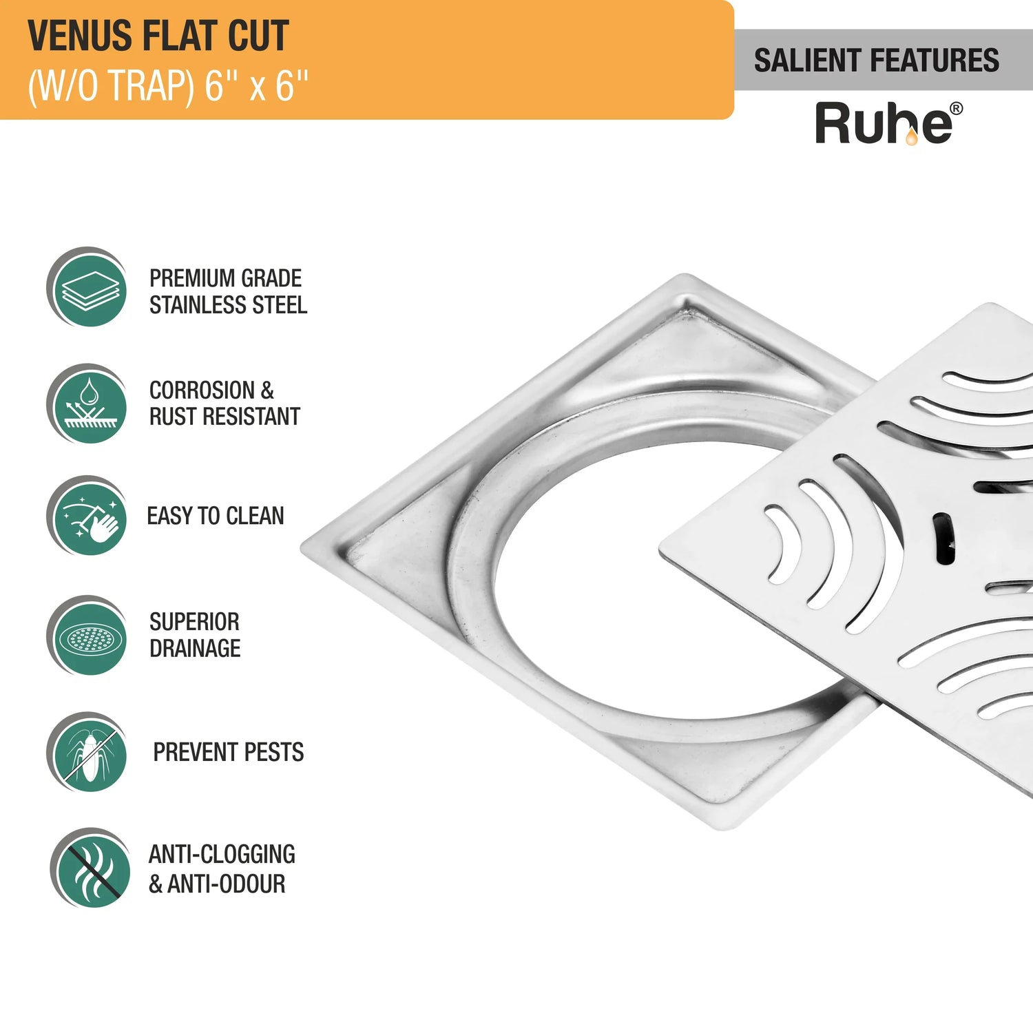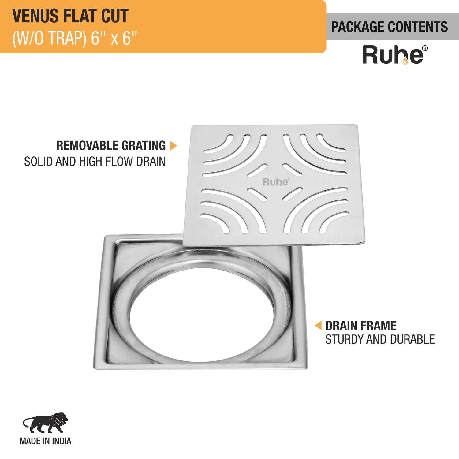 Venus Square Premium Flat Cut Floor Drain (6 x 6 Inches) - by Ruhe