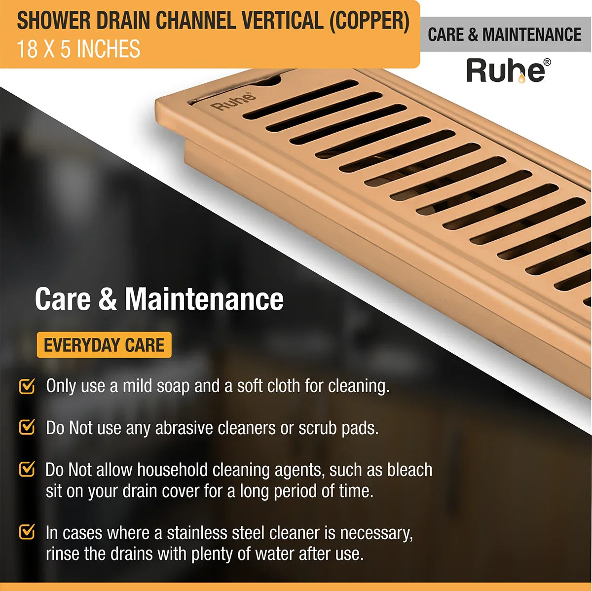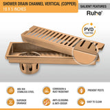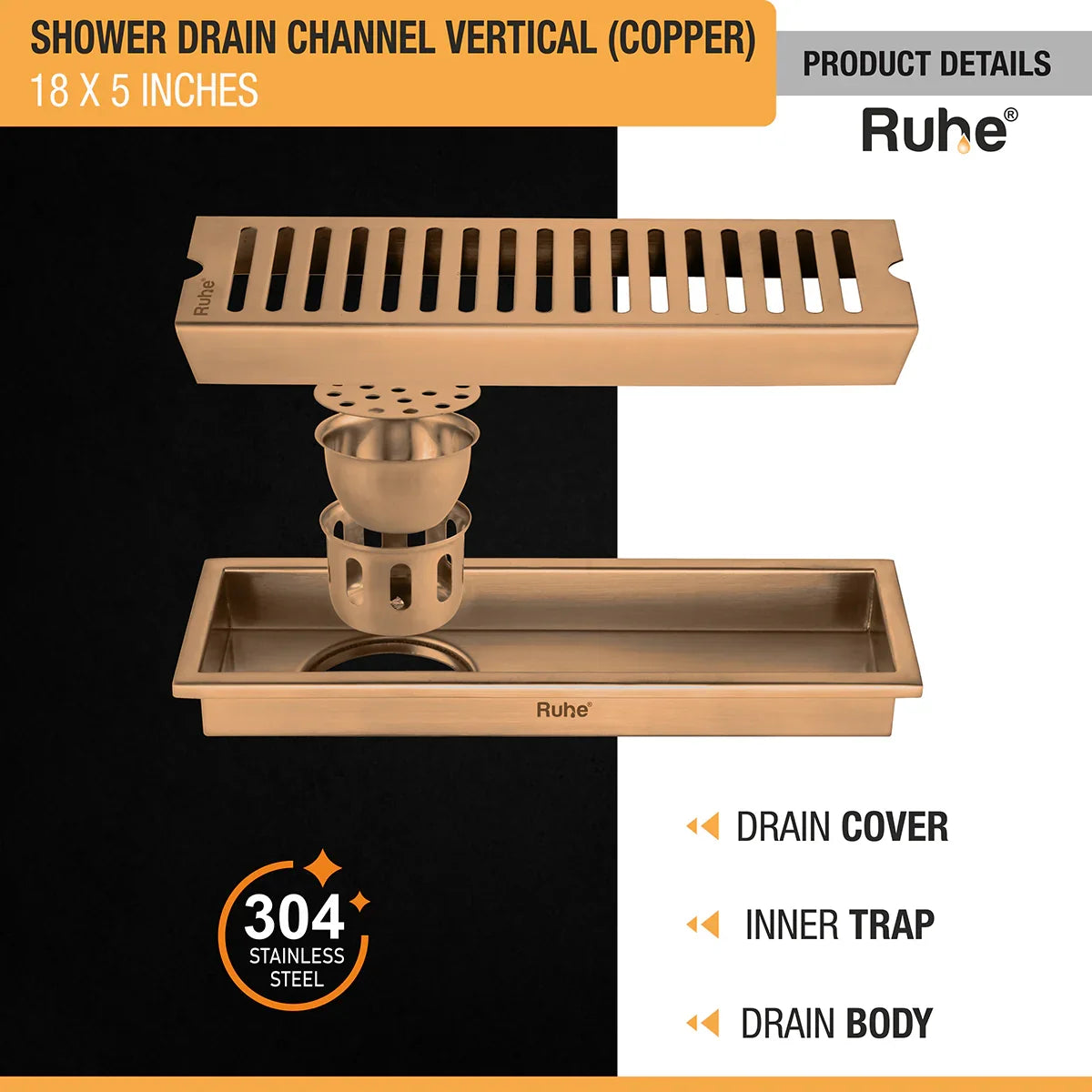 Vertical Shower Drain Channel (18 x 5 Inches) Antique Copper PVD Coated - by Ruhe