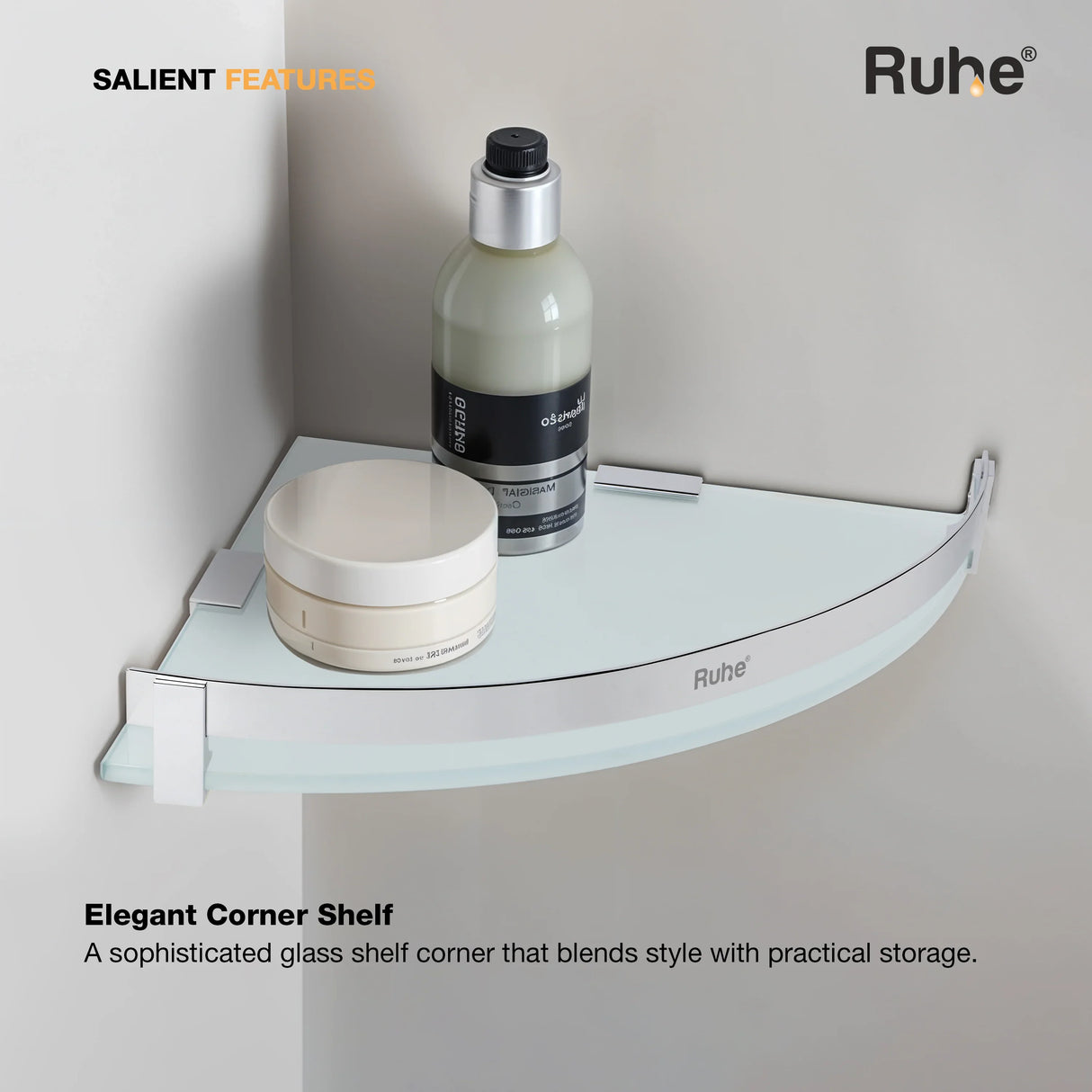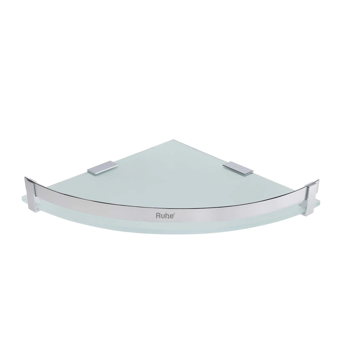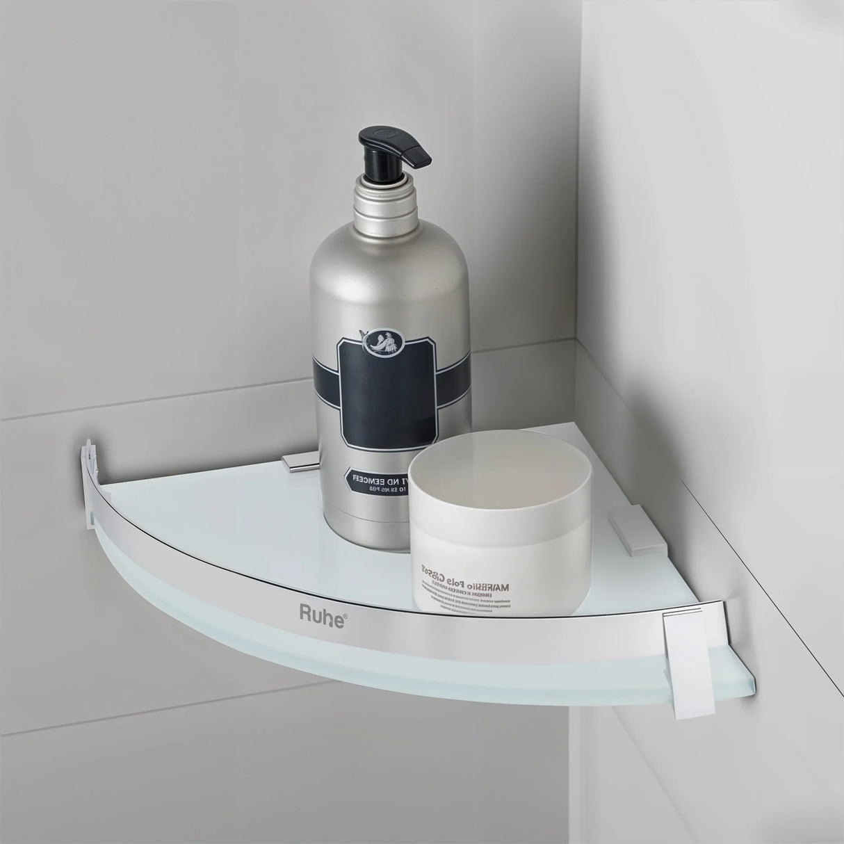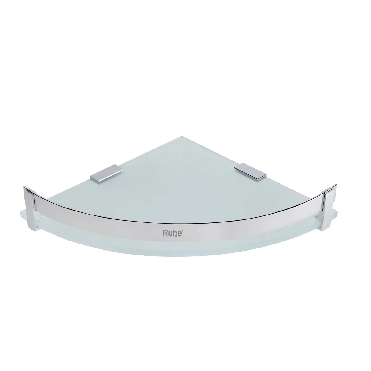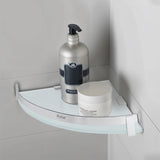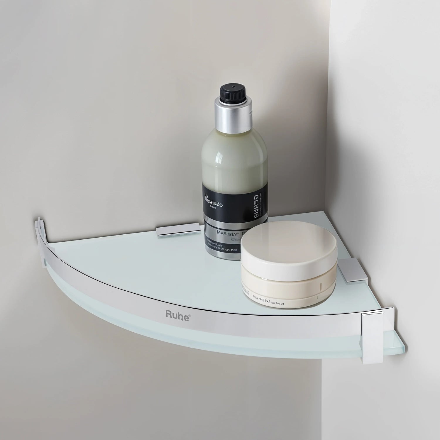 GLASS SHELF CORNER: A sleek frosted glass shelf corner that adds a refined touch while offering a secure platform for organizing essentials in compact bathroom spaces.