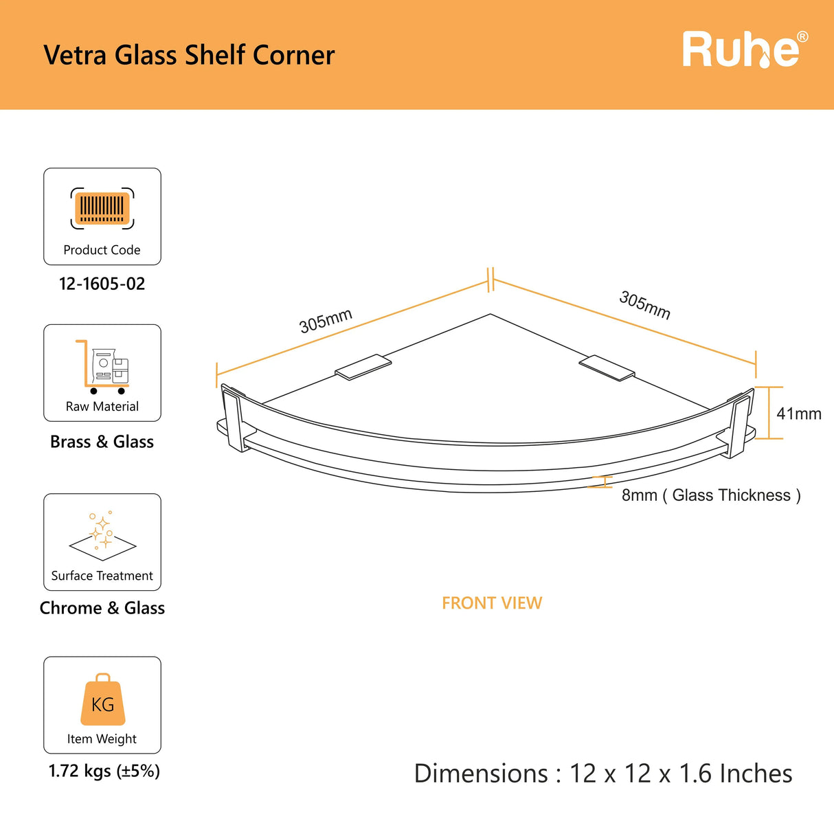 Vetra Glass Shelf Corner (12 x 12 inches)