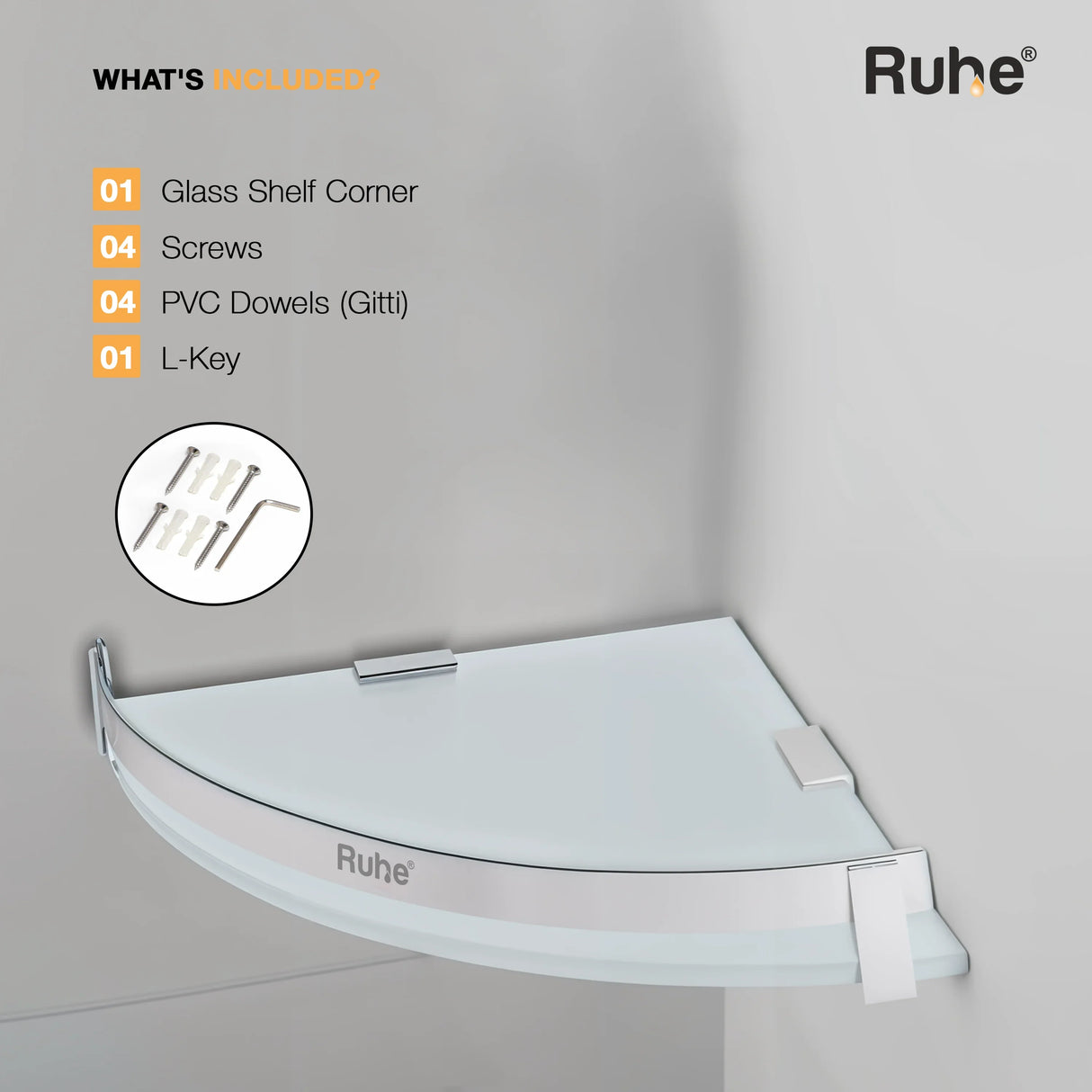 PACKAGE CONTENTS: An all-inclusive set that includes 1 Glass Shelf Corner, 4 PVC Dowels (Gitti), 4 Screws and 1 L-Key.