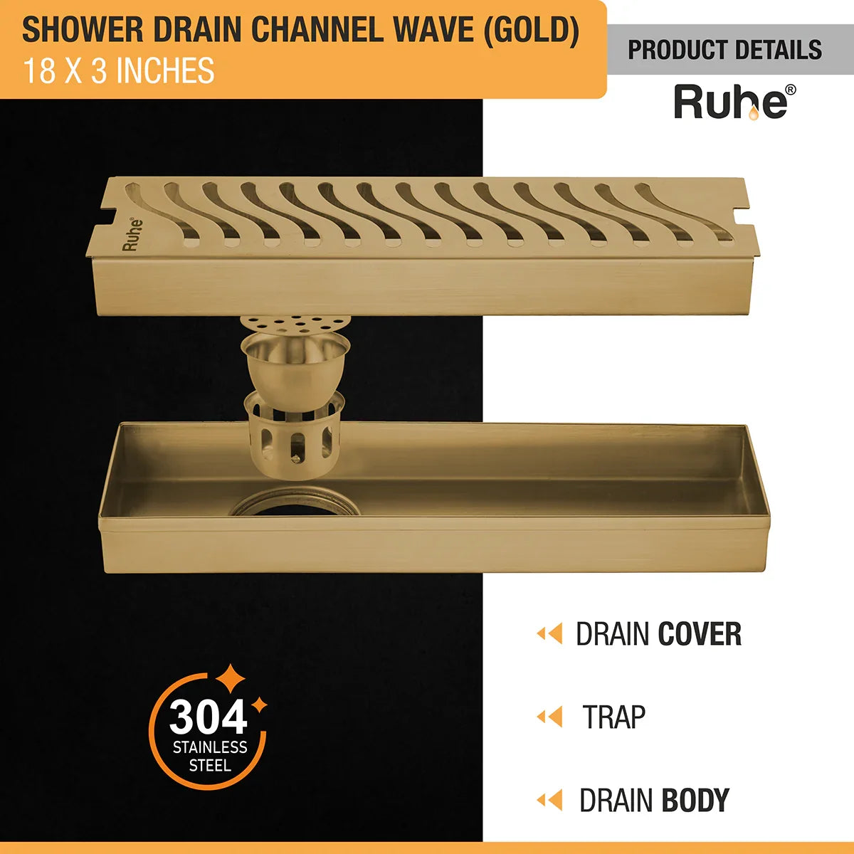 Wave Shower Drain Channel (18 x 3 Inches) YELLOW GOLD PVD Coated - ...