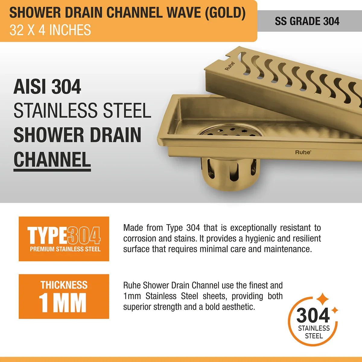 Wave Shower Drain Channel (32 x 4 Inches) YELLOW GOLD PVD Coated - ...