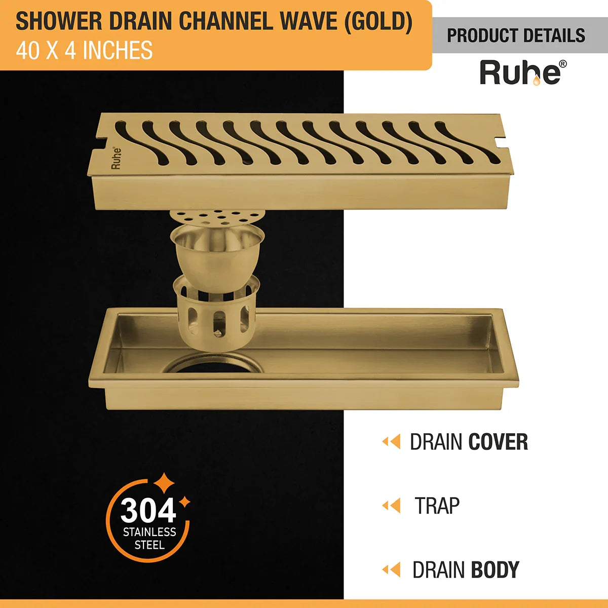 Wave Shower Drain Channel (40 x 4 Inches) YELLOW GOLD